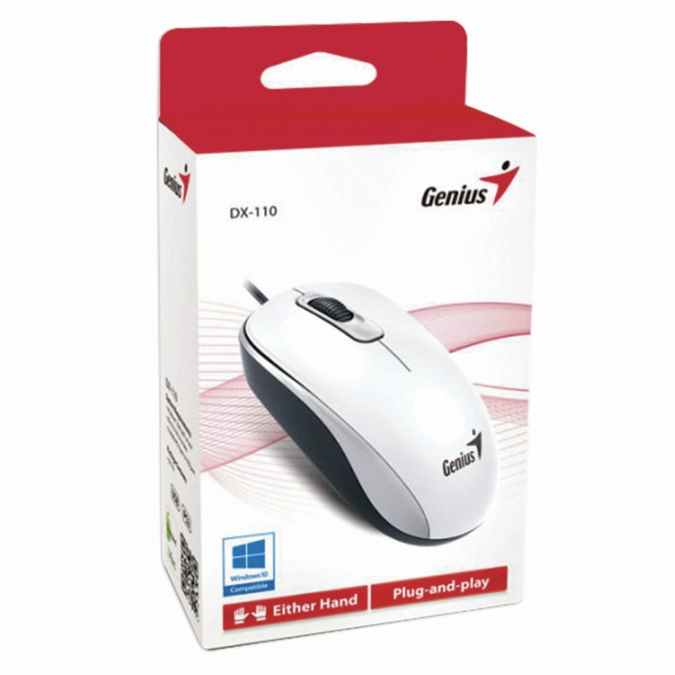 Мышь GENIUS DX-110 классическая проводная оптическая мышь для работы и дома. Интерфейс подключения: USB. Длина кабеля: 1.5 м. Технология сенсора: оптическая. Количество кнопок: 3. Максимальное разрешение курсора: 1000 dpi. Основной цвет корпуса: белый. Дополнительный цвет корпуса: белый. Длина: 105 мм. Ширина: 60 мм. Высота: 37 мм. Вес: 86 г. Упаковка: картонная коробка с европодвесом Бренд - GENIUS. Производитель - Китай. Артикул - 31010116102. Штрихкод - 4710268251484