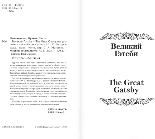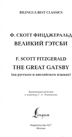Книга АСТ Великий Гэтсби. The Great Gatsby (Фицджеральд Ф.)