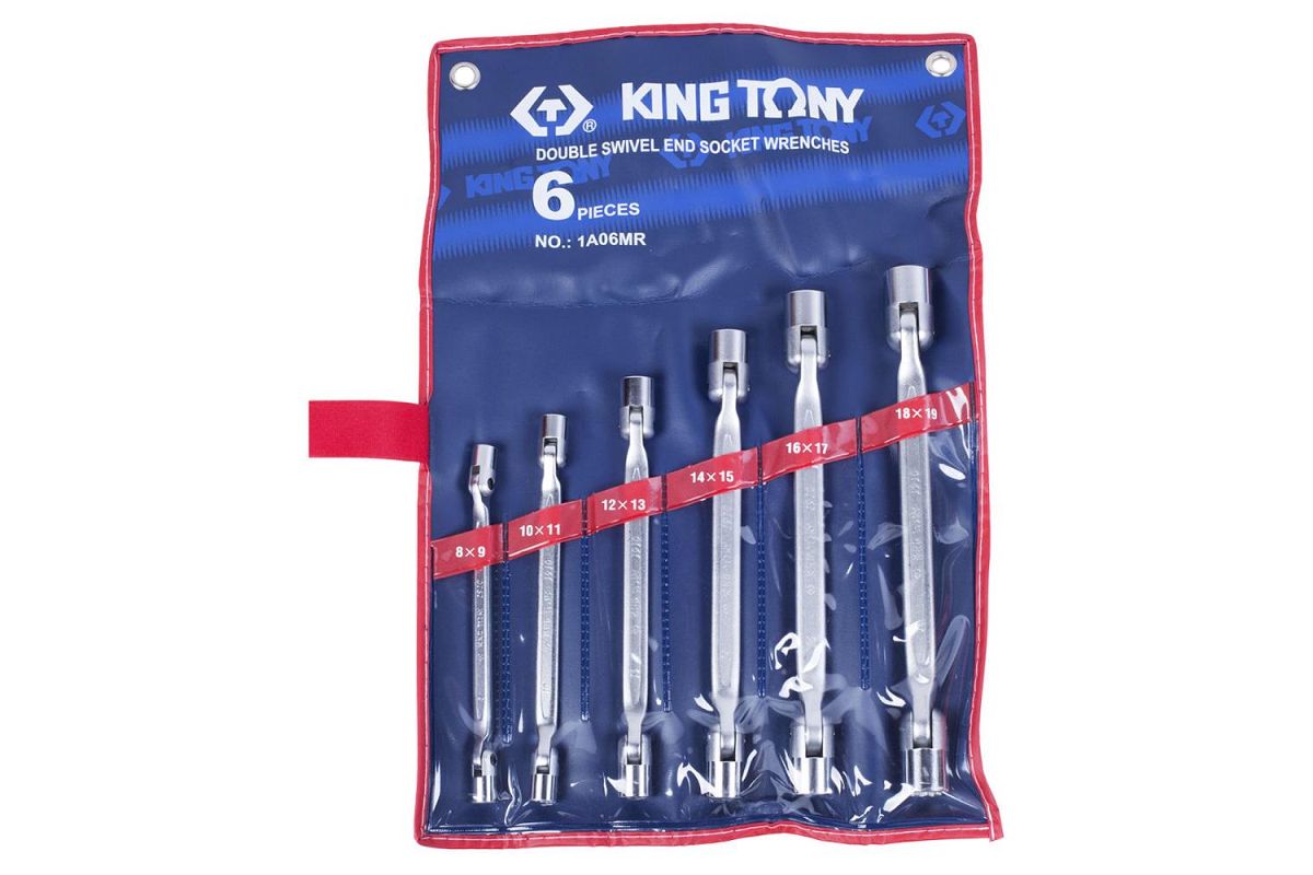 KING TONY Набор торцевых ключей с шарниром, 8-19 мм, 6 предметов 1910 8 x 9 , 10 x 11 , 12 x 13 , 14 x 15 , 16 x 17 , 18 x 19