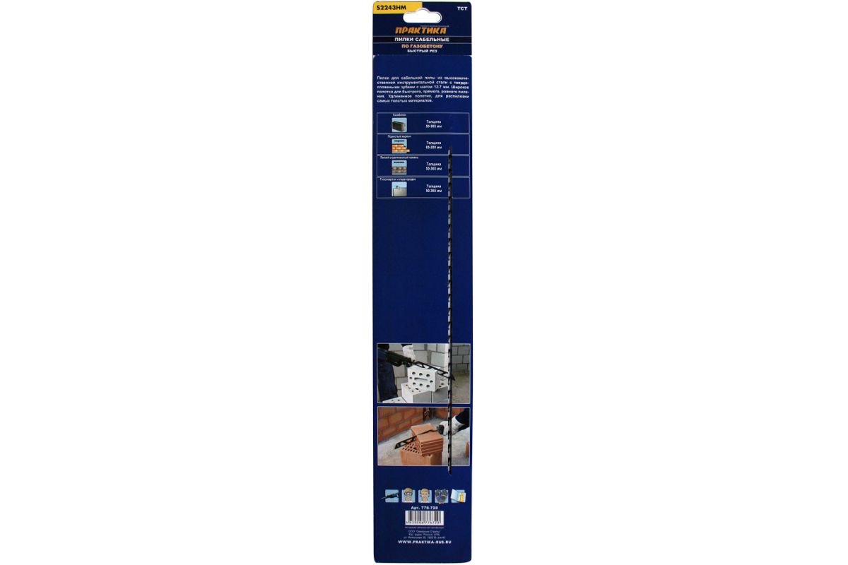 Полотно для сабельной пилы ПРАКТИКА 776-720 (S2243HM) газобетон, 455мм, шаг 12.7, 1шт.