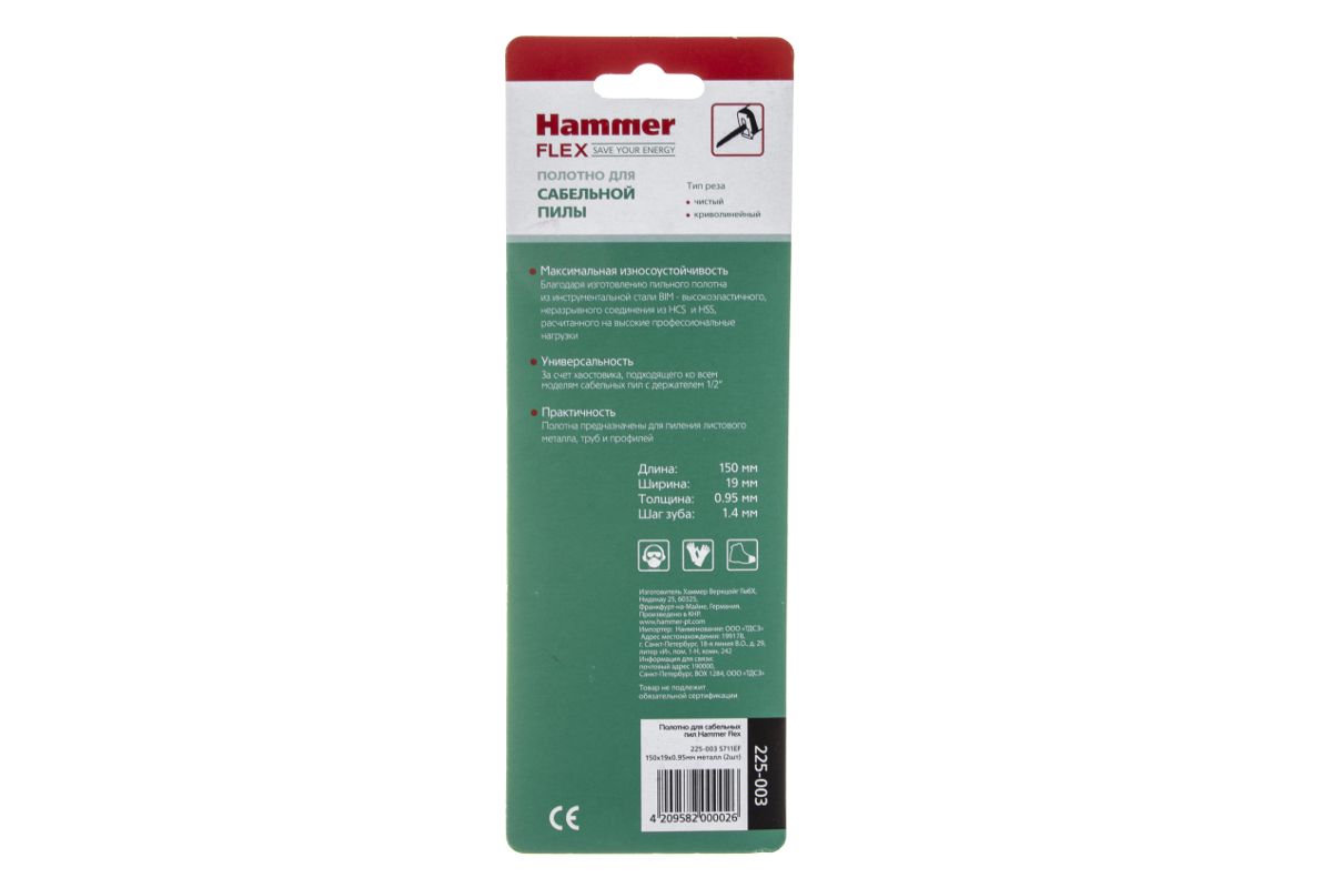 Полотно для сабельных пил Hammer Flex 225-003 S711EF 150x19x0.95мм металл (2шт)