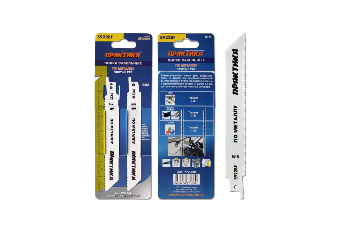 Полотно для сабельной пилы ПРАКТИКА 773-569 (S922BF) металл, 150мм, шаг 1.8, BiM, 2шт.