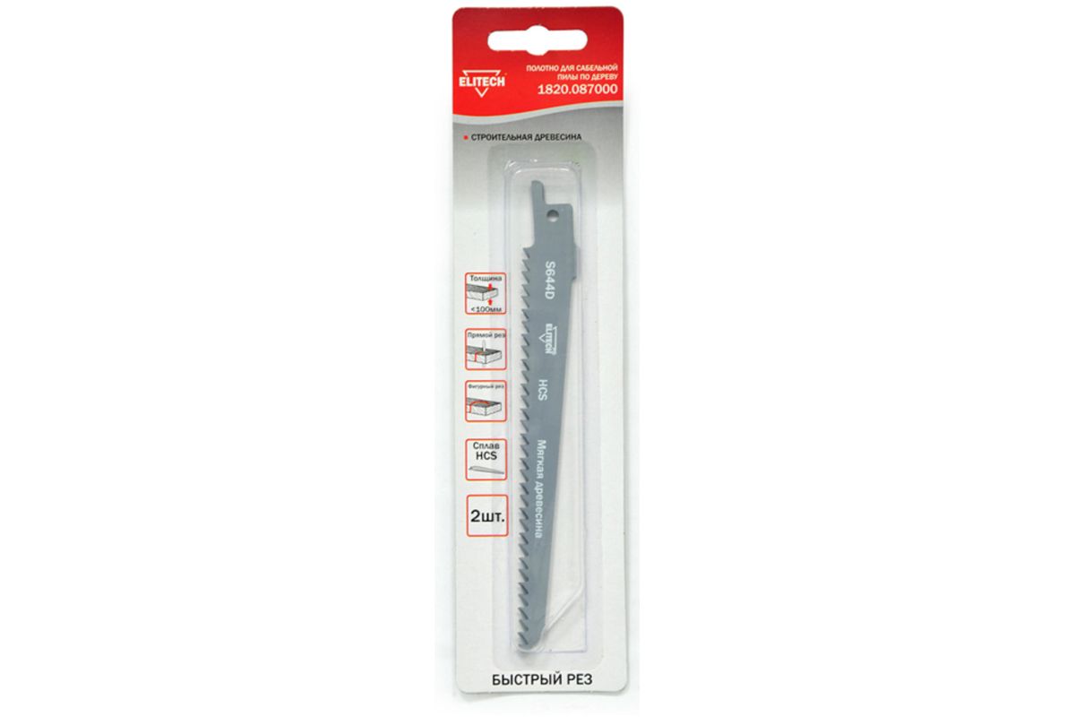 Полотно пильное ELITECH 1820.087000 Полотно пильное д\сабельной пилы,2шт,HCS,130мм,рез до 100мм,д\строительной древ,чист\пропил
