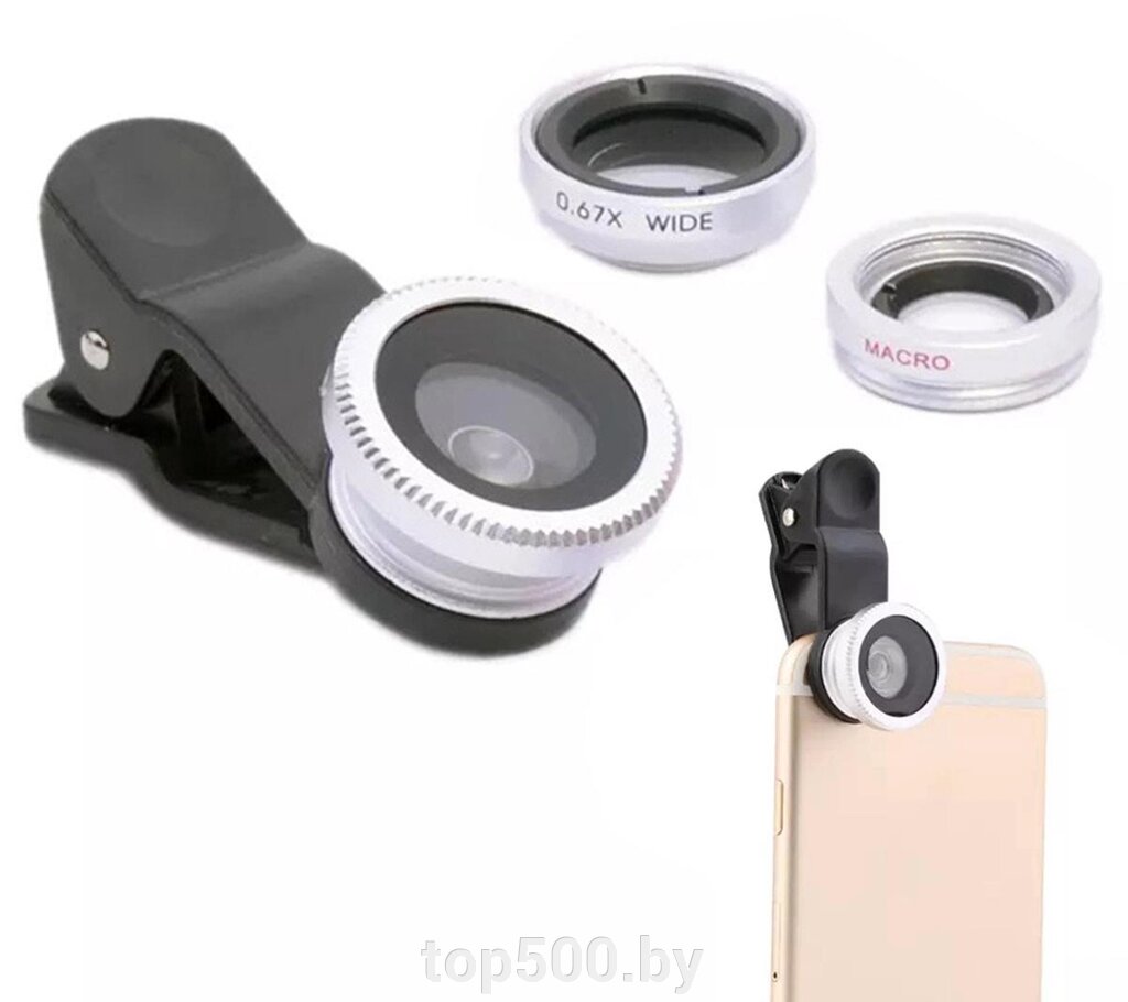 Набор объективов для телефона 3в1 SiPL серебр