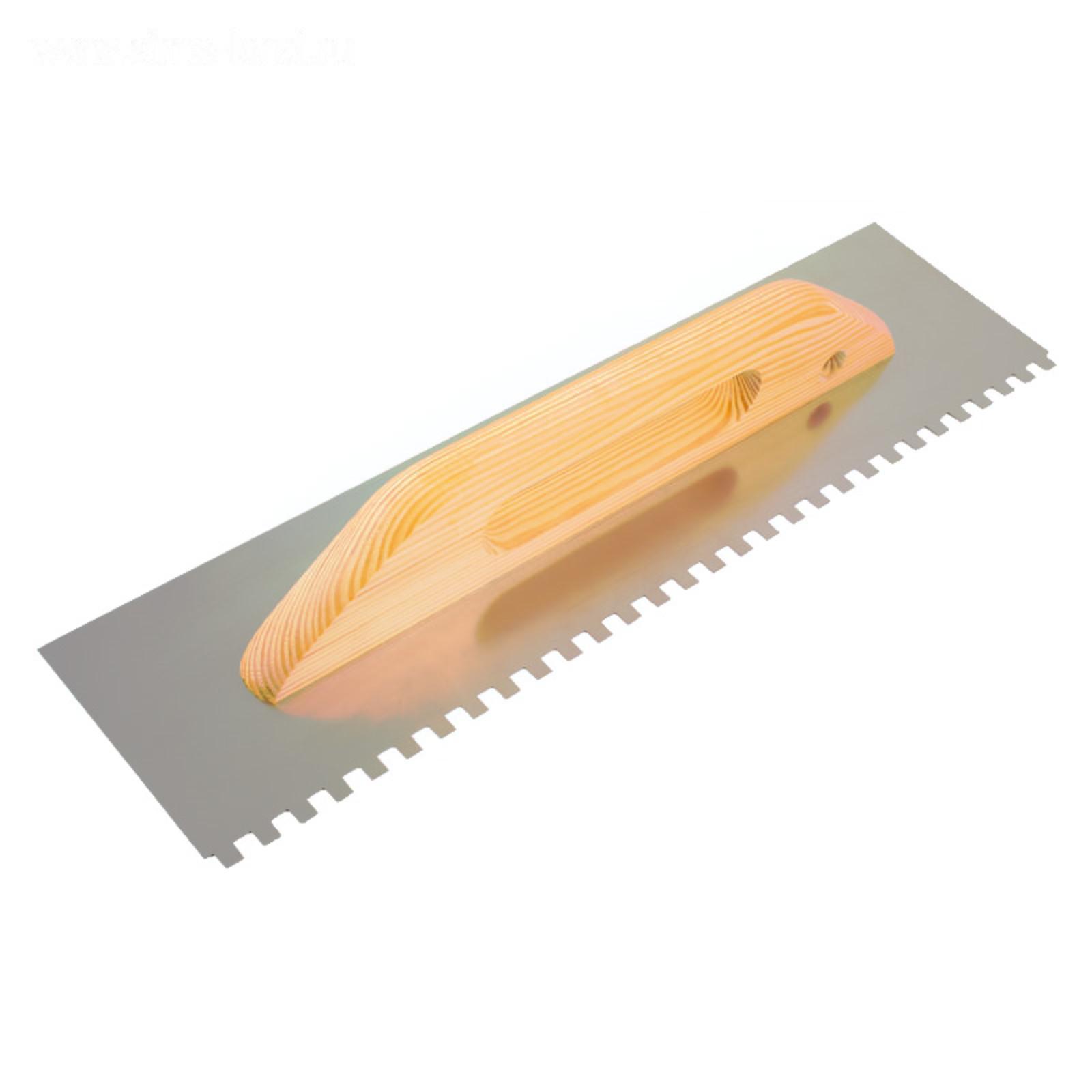 Гладилка "РемоКолор" 27-0-108, нержавеющая сталь, дерево, зуб 8х8 мм, 480х125 мм
