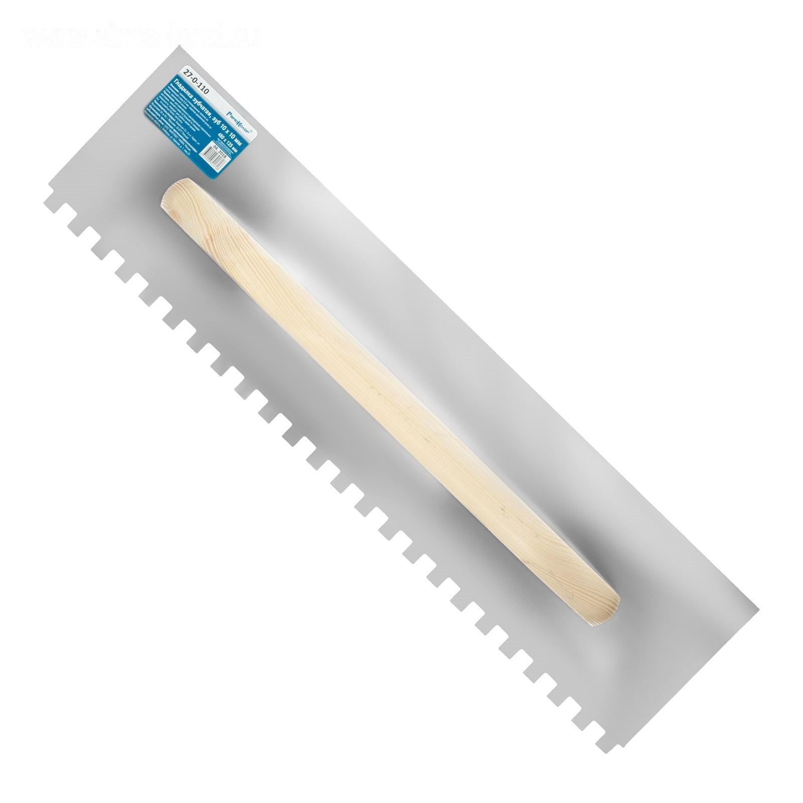 Гладилка "РемоКолор" 27-0-110, нержавеющая сталь, дерево, зуб 10х10 мм, 480х125 мм