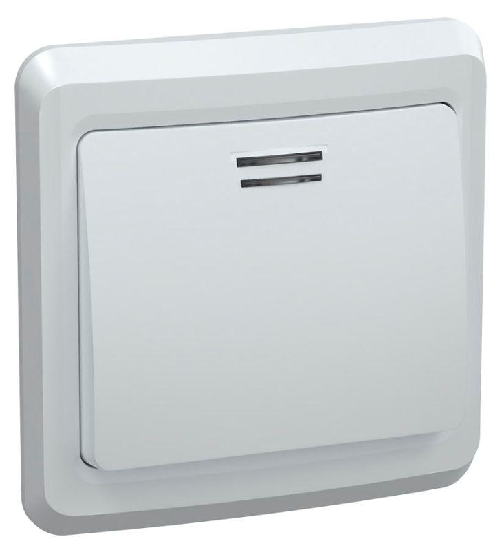 Описание товара Выключатель 1-кл. СП Вега 10А IP20 ВС10-1-1-ВБ с индикацией бел. ИЭК EVV11-K01-10-DM
