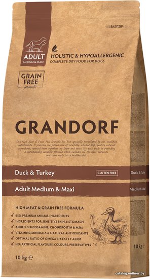 - Ингредиенты Дегидрированное мясо утки, Дегидрированное мясо индейки, Сушеный сладкий картофель (батат), Свежее мясо утки, Жир индейки, Сушеный шпинат, Экстракт цикория (естественный источник FOS и инулина), Мука из плода рожкового дерева, Сушеное яблоко, Сушеный Антарктический Криль (естественный источник EPA и DHA), Семена льна, DL-Метионин, Глюкозамин, Хондроитин, МСМ (Метилсульфонилметан), Комплекс натуральных антиоксидантов (Экстракт Розмарина, Грейпфрута, Апельсина, Куркумы и Сизигиума). Сохранено витамином С, розмарином и смесью природных токоферолов (источник натурального витамина Е).