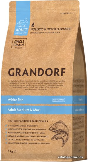 - Ингредиенты Дегидрированное мясо трески, Дегидрированное мясо сельди, Цельный бурый рис, Жир индейки, Экстракт цикория (естественный источник FOS и инулина), Сушеный сладкий картофель (батат), Сушеный шпинат, Свежее масло лосося, Мука из плода рожкового дерева, Сушеное яблоко, Сушеный Антарктический Криль (естественный источник EPA и DHA), Пивные дрожжи (естественный источник MOS), L-Карнитин, Глюкозамин, Хондроитин, МСМ (Метилсульфонилметан), Комплекс натуральных антиоксидантов (Экстракт Розмарина, Грейпфрута, Апельсина, Куркумы и Сизигиума). Сохранено витамином С, розмарином и смесью природных токоферолов (источник натурального витамина Е).