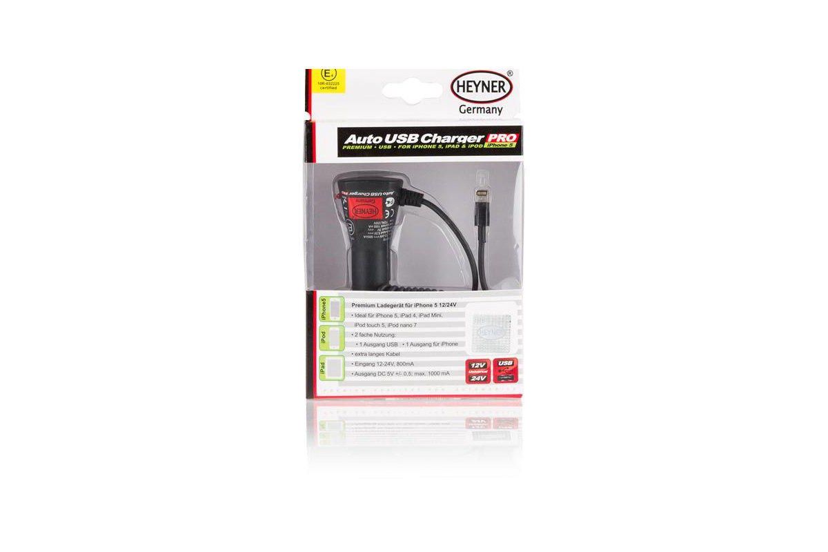 Зарядное устройство HEYNER 511710 от прикуривателя для iPhone 4 и 5; iPad mini; iPod touch; iPod n