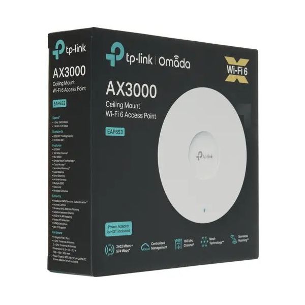 Точка доступа TP-Link EAP653 – компактное устройство с потолочным или настенным монтажом и упрощенным питанием PoE. В беспроводном режиме система гарантирует скорость передачи данных 2402 Мбит/с, а через Ethernet-интерфейс 1000 Мбит/с. Прибор оснащен 4-мя внутренними антеннами и индикацией рабочего статуса. Модель TP-Link EAP653 порадует расширенным функционалом, включая Mesh, DHCP и MIMO 2x2. Вы можете просматривать статистику Wi-Fi, ограничивать скорость и перезагружать модем по расписанию, использовать автовыбор канала и прочие функции. Управлять настройками удобно через Web-интерфейс или технологию TP-Link Omada.