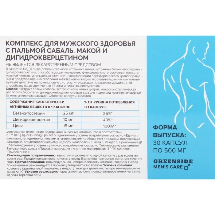Комплекс для мужского здоровья с пальмой сабаль, макой и дигидрокверцетином, 30 капсул, 500