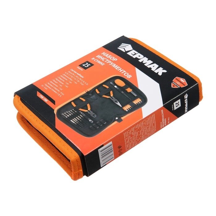 Набор бит и торцевых головок ЕРМАК, 736-188, с воротками и адаптерами, кейс папка, 25 шт