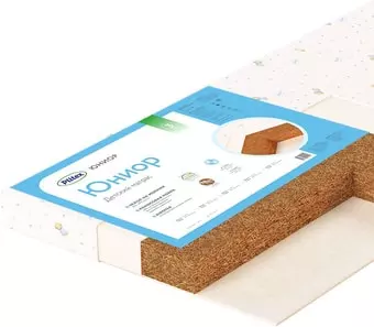 Жёсткий, симметричный матрас, ширина 60 см, длина 120 см, высота 12 см, базовый блок - беспружинный, настилочные материалы - термоскрепленный войлок: 95 мм (Hollcon Plus). Кокосовая койра: 20 мм (латексированная, 10+10). Синтепон: (Airotek).