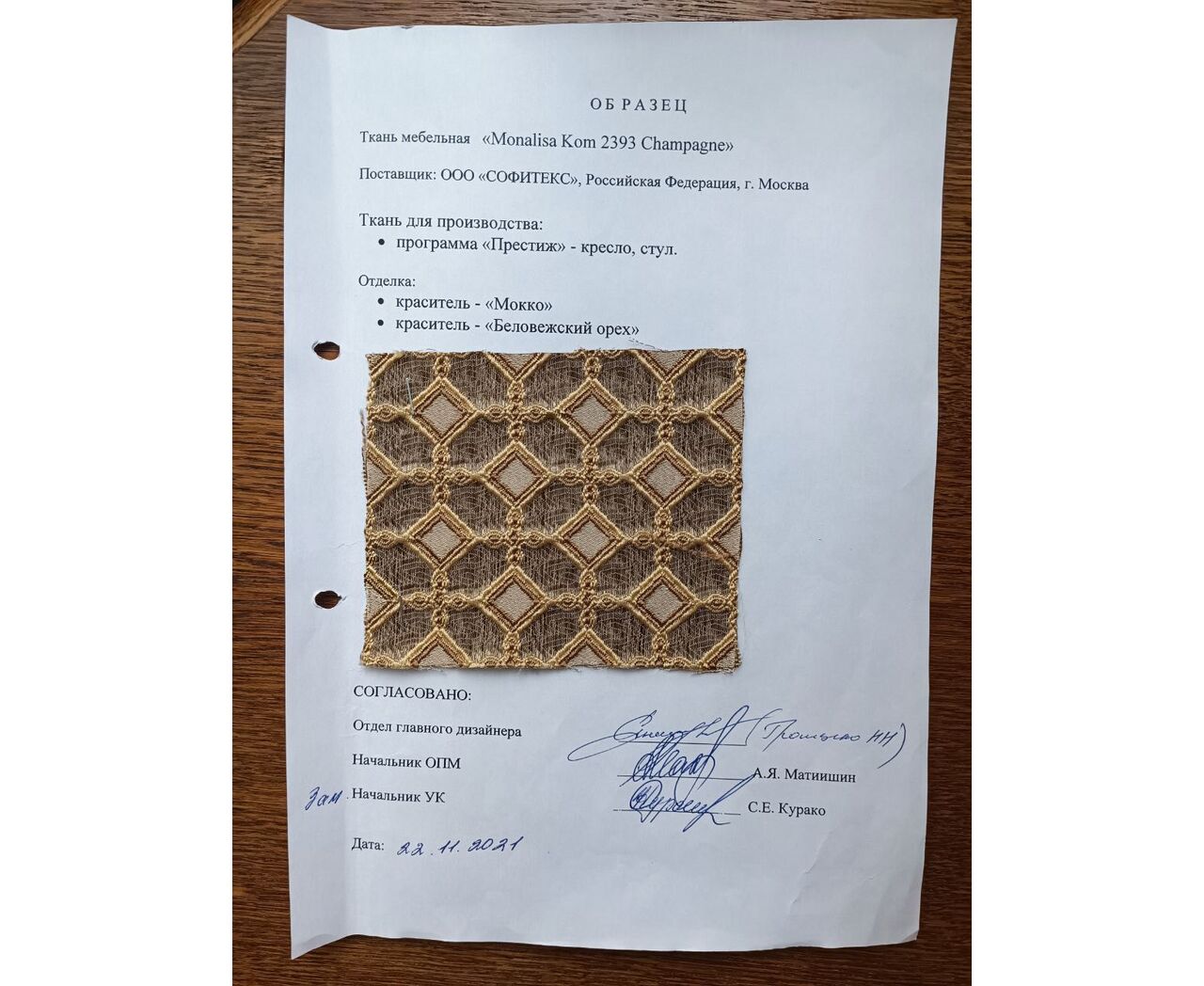 • Цвет обивки Monalisa