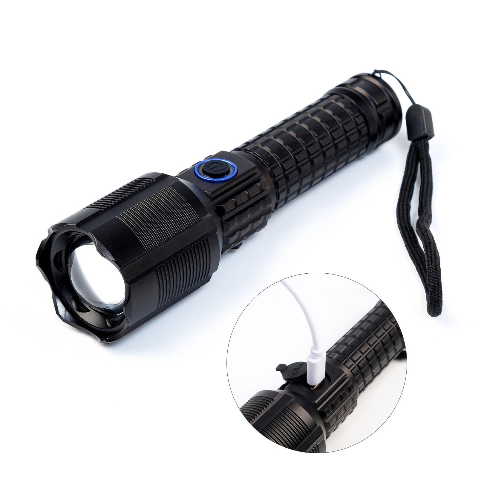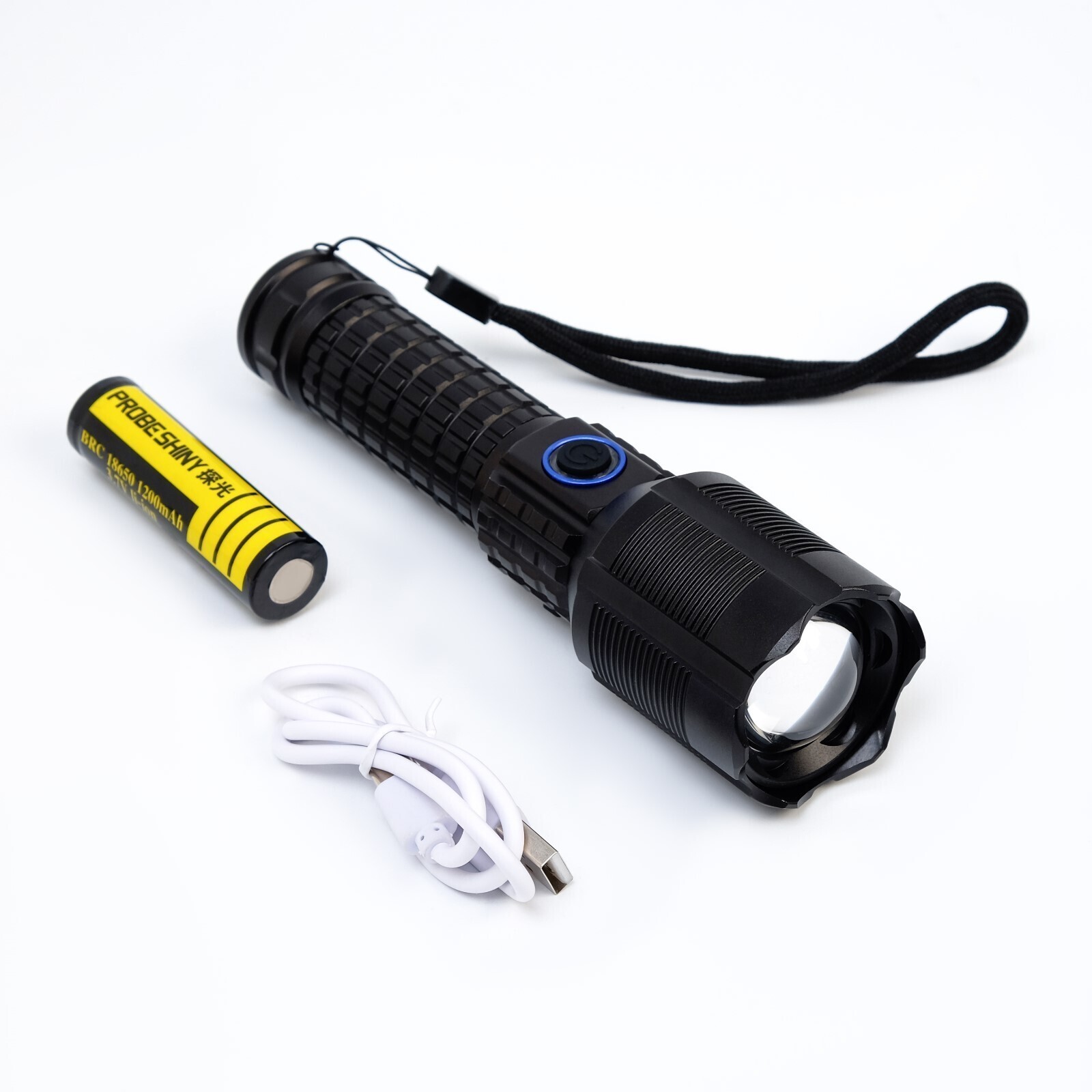 Фонарь ручной 1500 лм, 3000 мАч, P50, 3 режима, индикатор заряда, сенсор, zoom, type-с