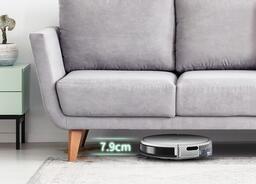 Продвинутый робот-пылесос с мощностью всасывания до 2000 Па. На одном полном заряде прибор способен выполнять свои обязанности до двух часов в режиме сухой (контейнер на 400 мл) или влажной уборки (300 мл), после чего вернётся на базу без лишних напоминаний. Благодаря небольшой высоте корпуса пылесос без труда пролезет под шкафы и диваны, куда обычной шваброй не дотянуться. С помощью мобильного приложения можно задать ему график работы. Он идеально уберет все помещение, пока вы находитесь на работе.