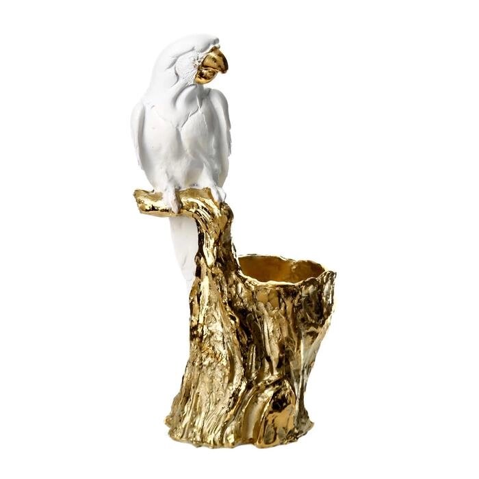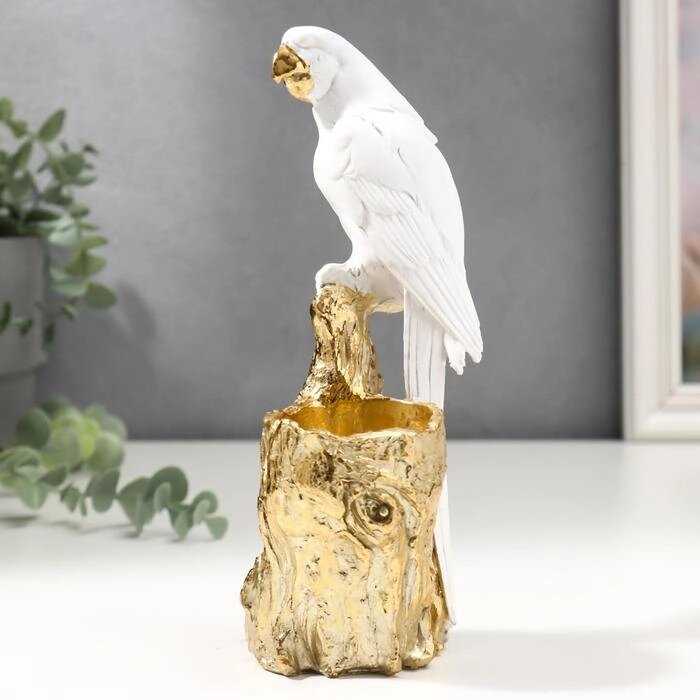 Сувенир полистоун подсвечник "Белый попугай Ара на золотом пеньке" 19х7х9,5 см