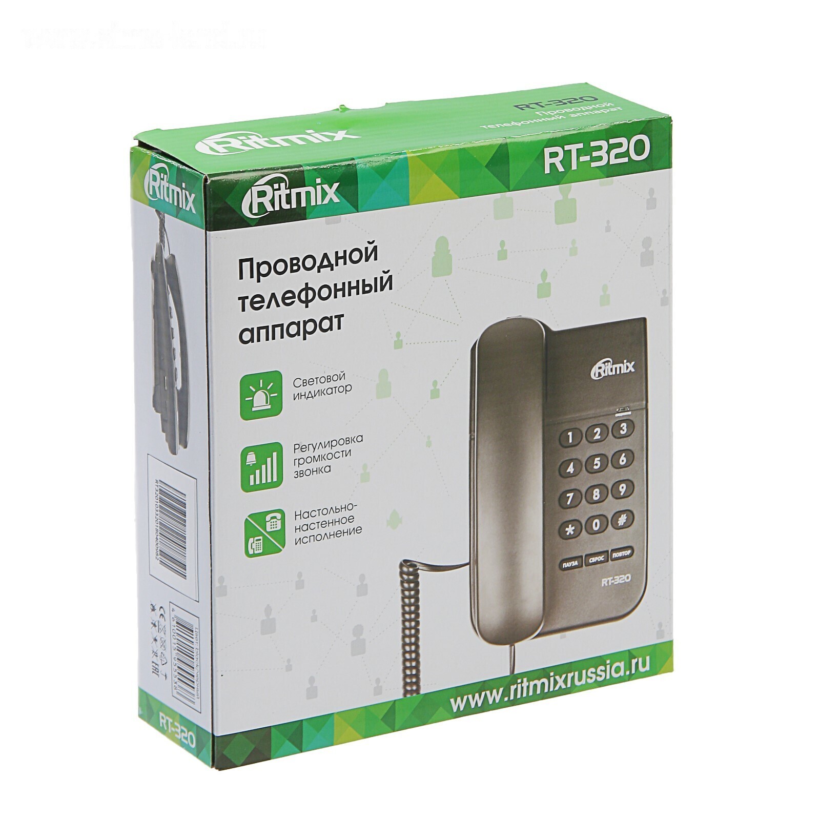Проводной телефон Ritmix RT-320, световой индикатор, настольно-настенный, черный