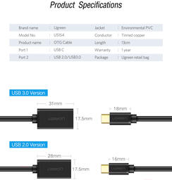 Адаптер Ugreen US154 / 30701 (0.15м, черный)