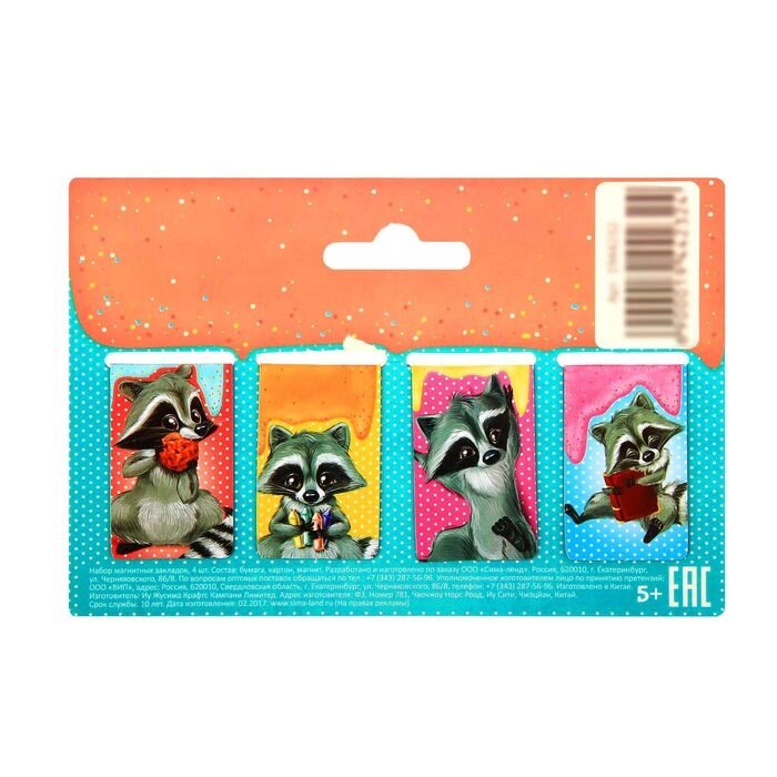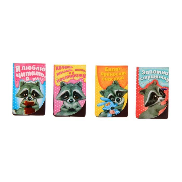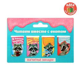 Набор магнитных закладок "Читаем вместе с енотом", 4 шт.