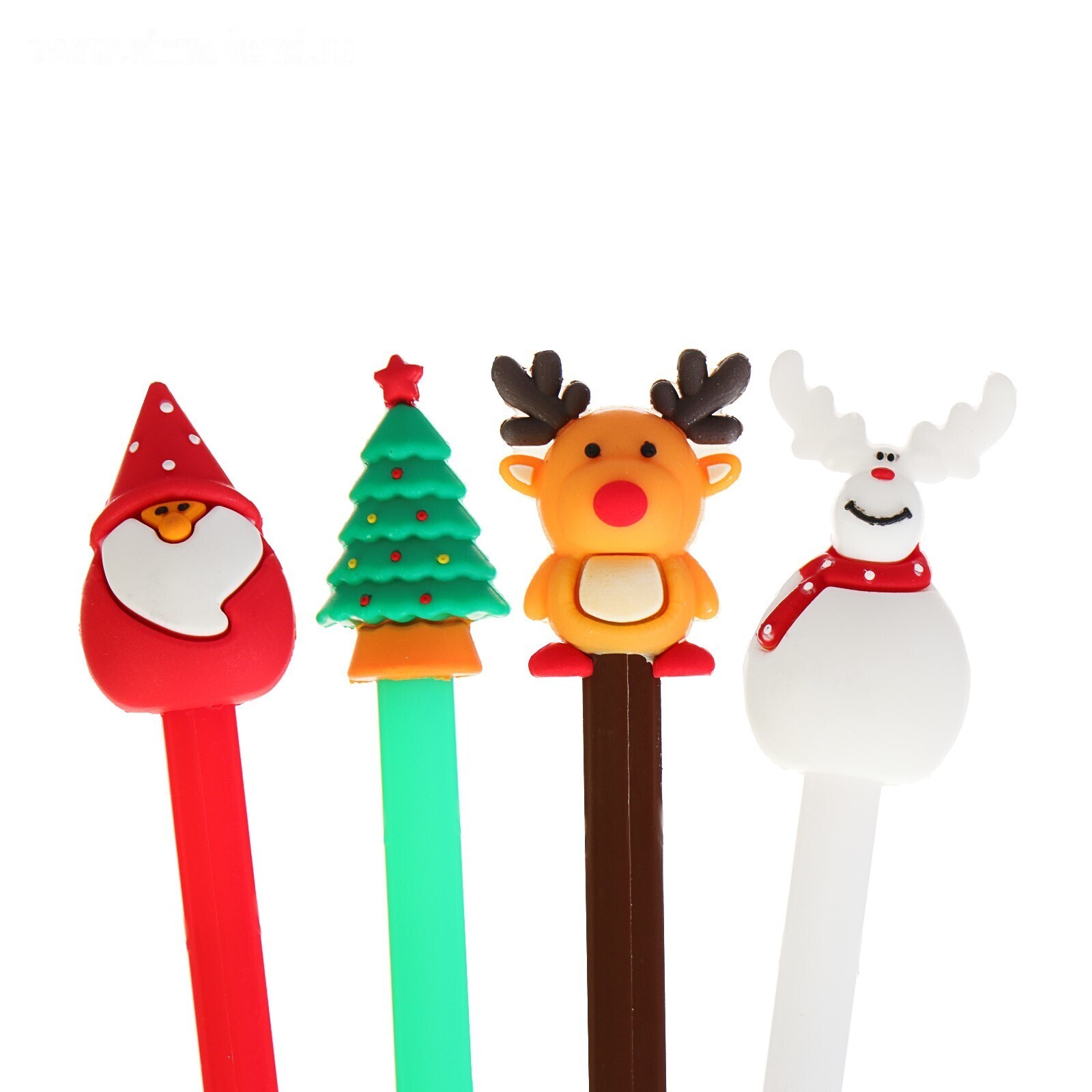 Ручка гелевая-прикол МИКС Дед Мороз/Елка/Олень/Снеговик (штрихкод на штуке)