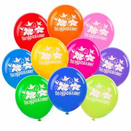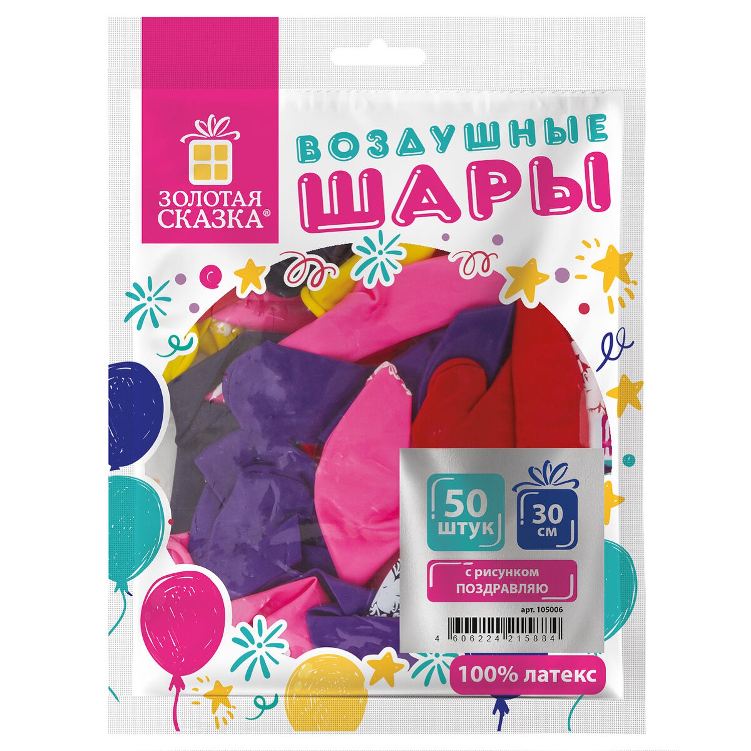 Шары воздушные Золотая сказка 50 штук ассорти 10 цветов рисунок Поздравляю 105006