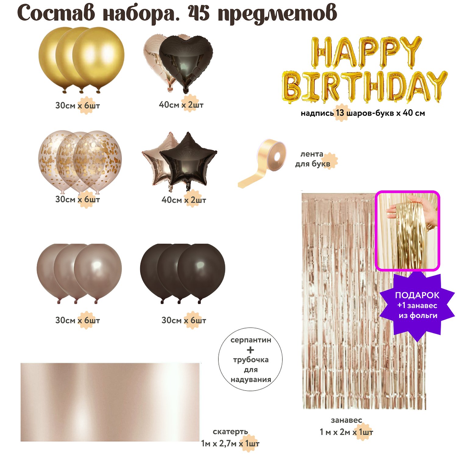 Воздушные шары набор Мишины шарики для фотозоны на день рождения с фольгированными буквами Happy Birthday 4603320203012