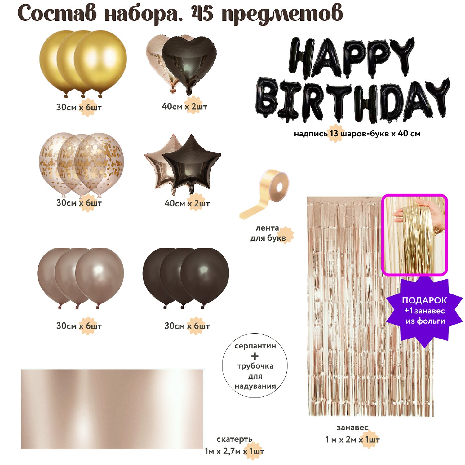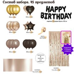 Воздушные шары набор Мишины шарики для фотозоны на день рождения с фольгированными буквами Happy Birthday 4603320039949