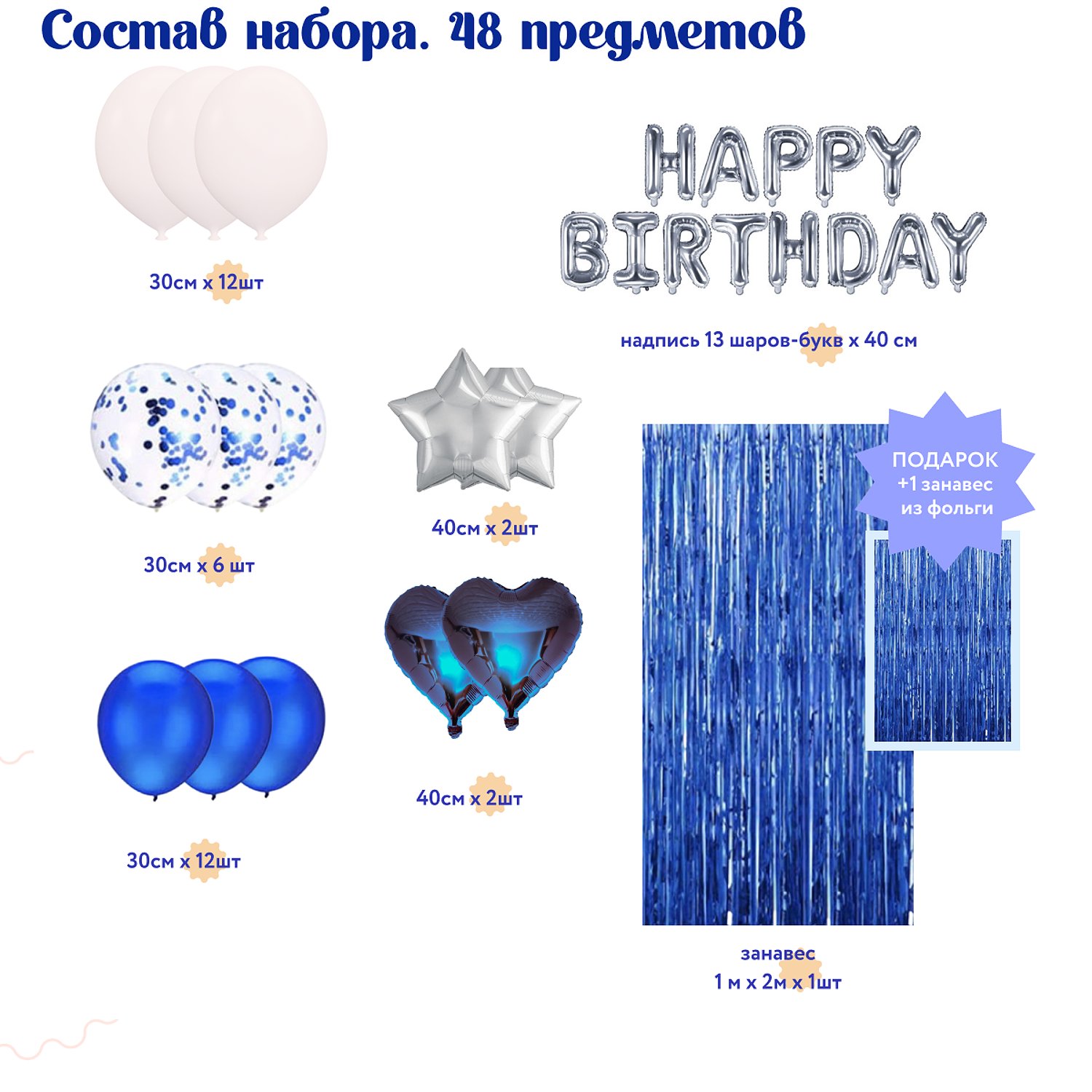 Воздушные шары набор Мишины шарики для фотозоны на день рождения с фольгированными буквами Happy Birthday 4603320203043