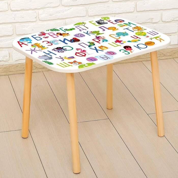 Стол с деревянными ножками «Алфавит с животными», цвет белый