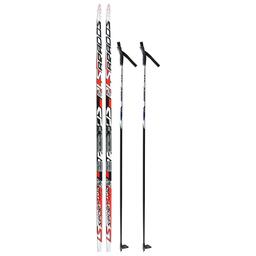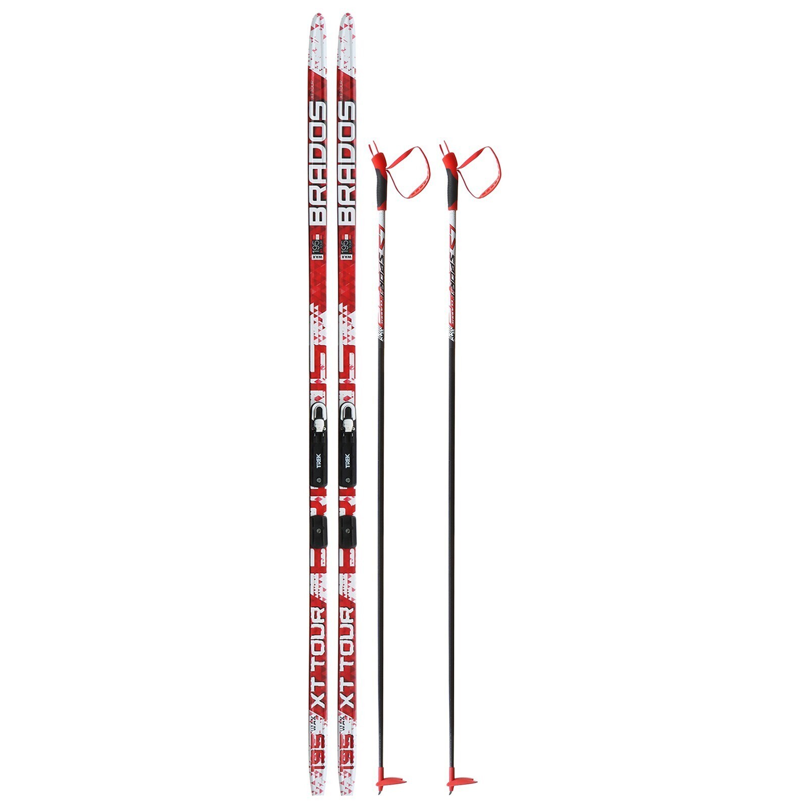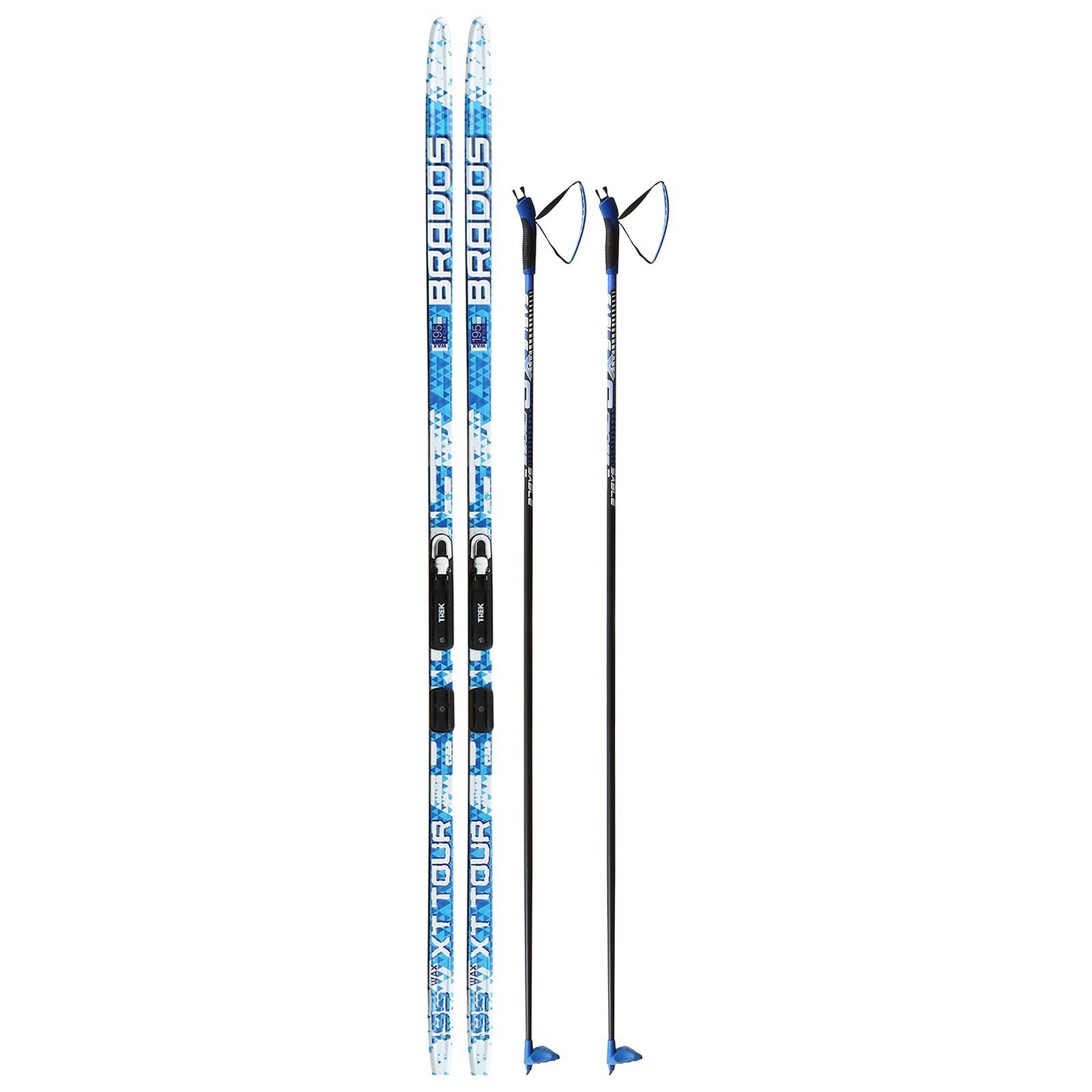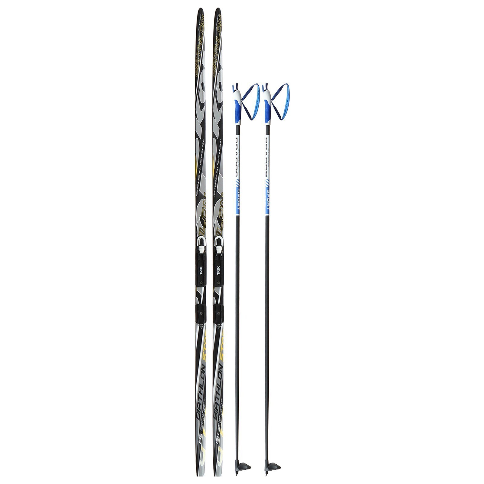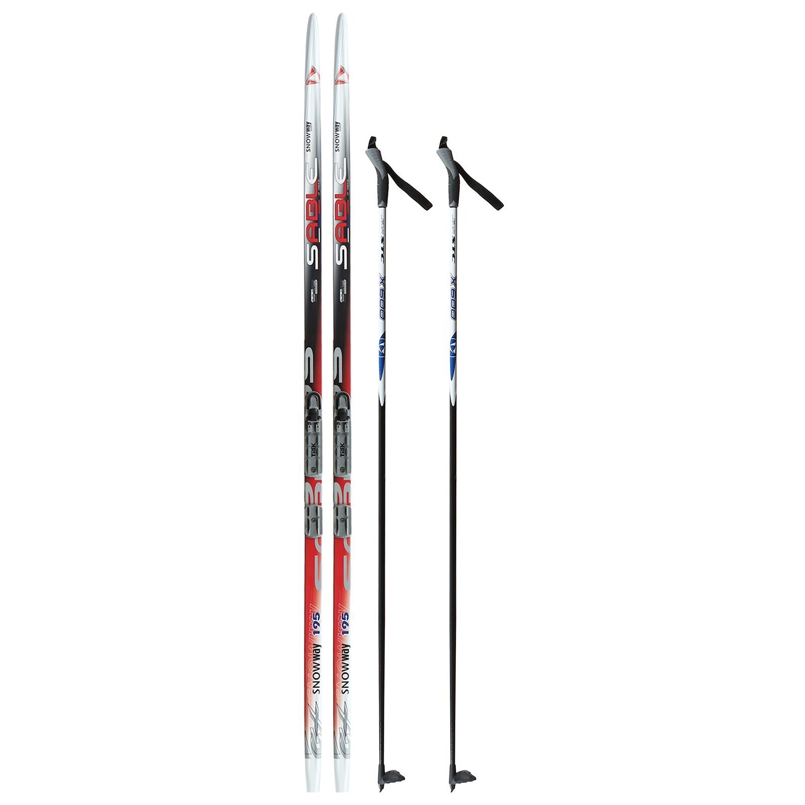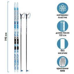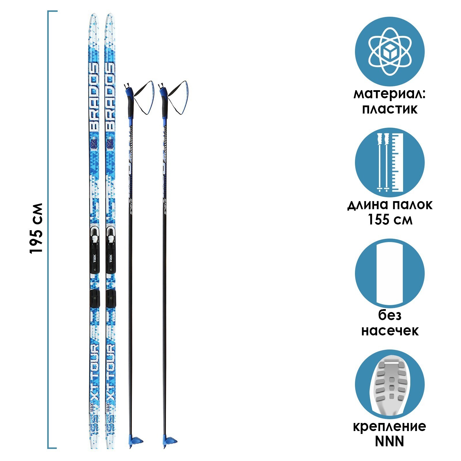 Комплект лыжный: пластиковые лыжи 195 см без насечек, стеклопластиковые палки 155 см, крепления NNN «БРЕНД ЦСТ», цвета микс
