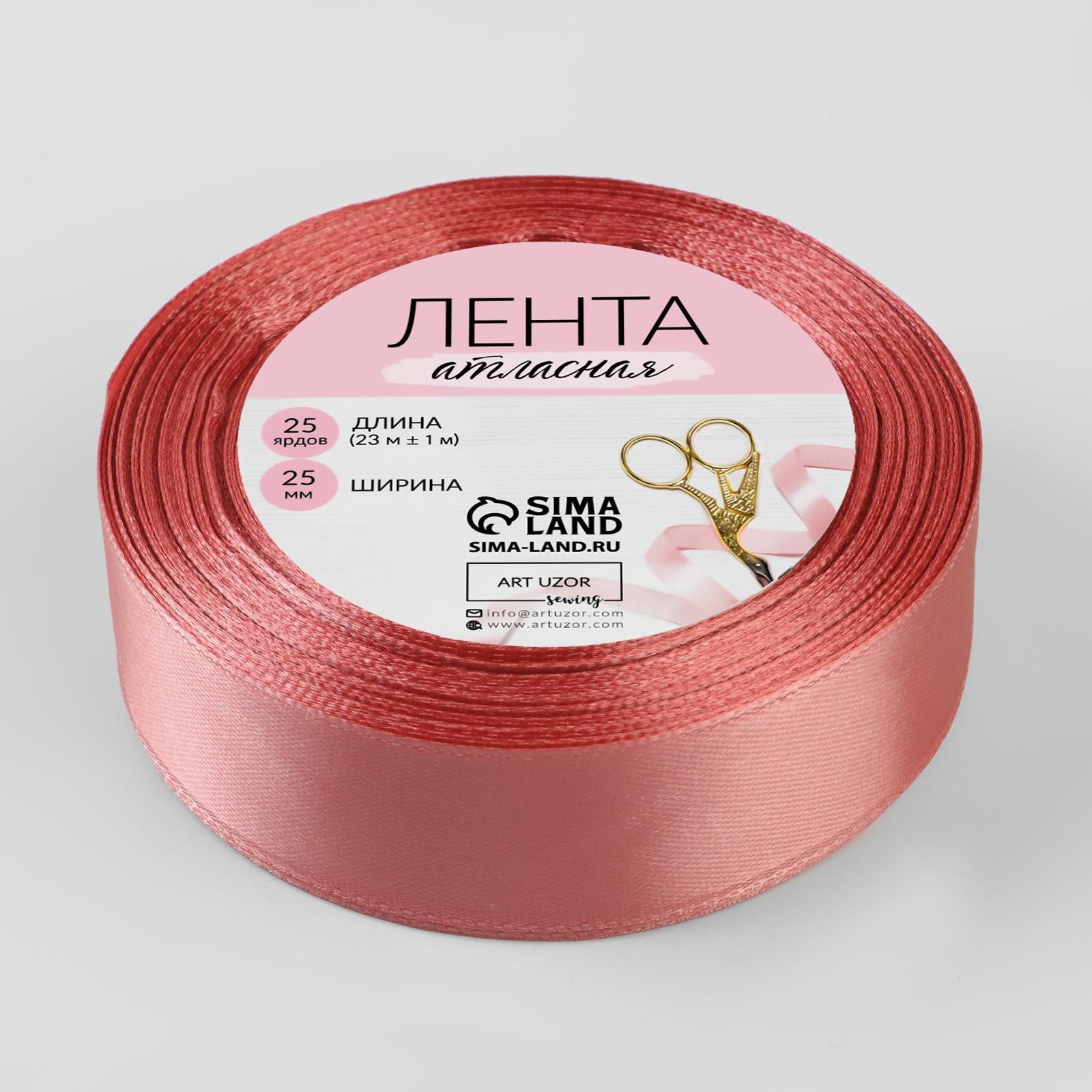 Лента атласная, 25 мм × 23 ± 1 м, цвет розовый антик №102