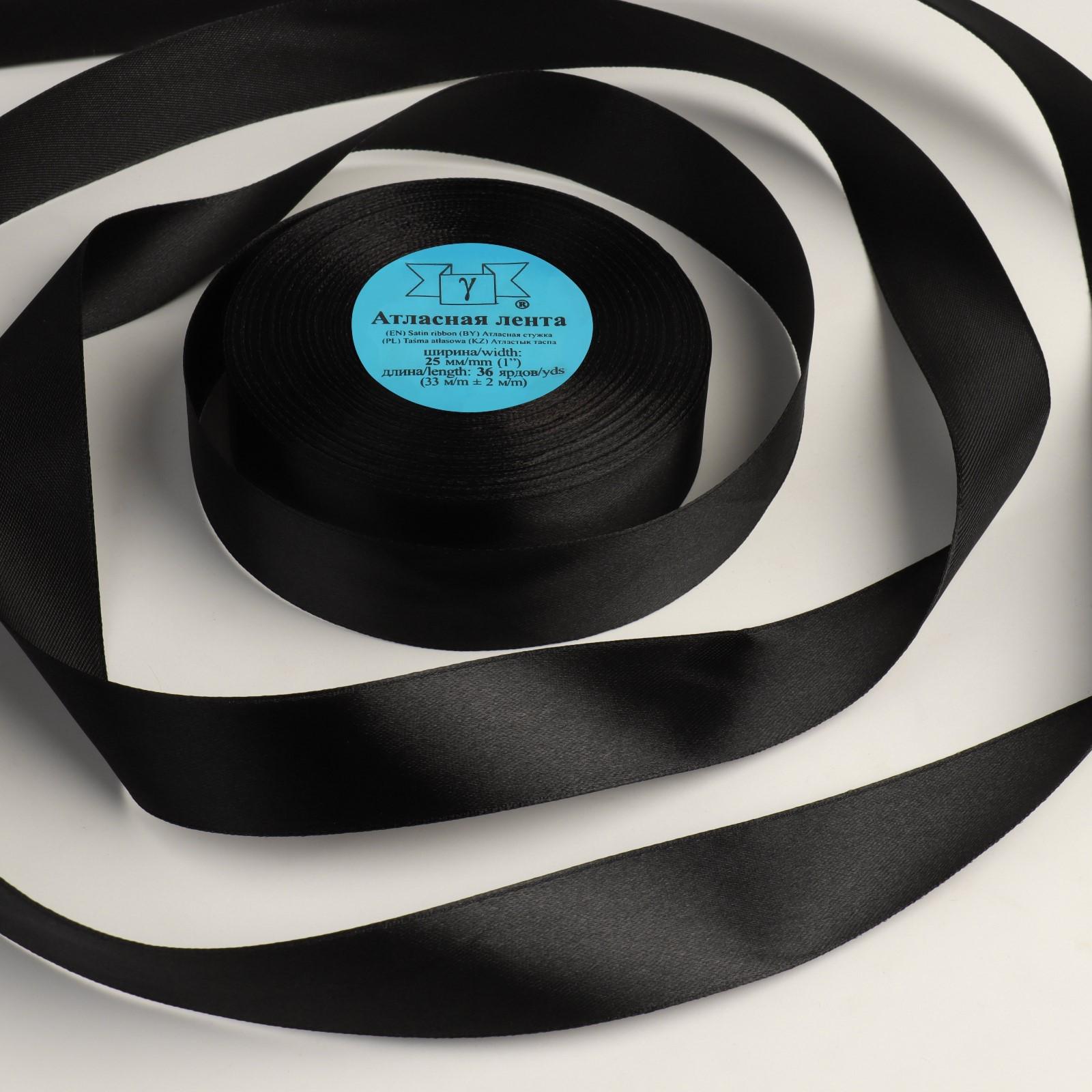 Лента атласная, 25 мм × 33 ± 2 м, цвет чёрный №113