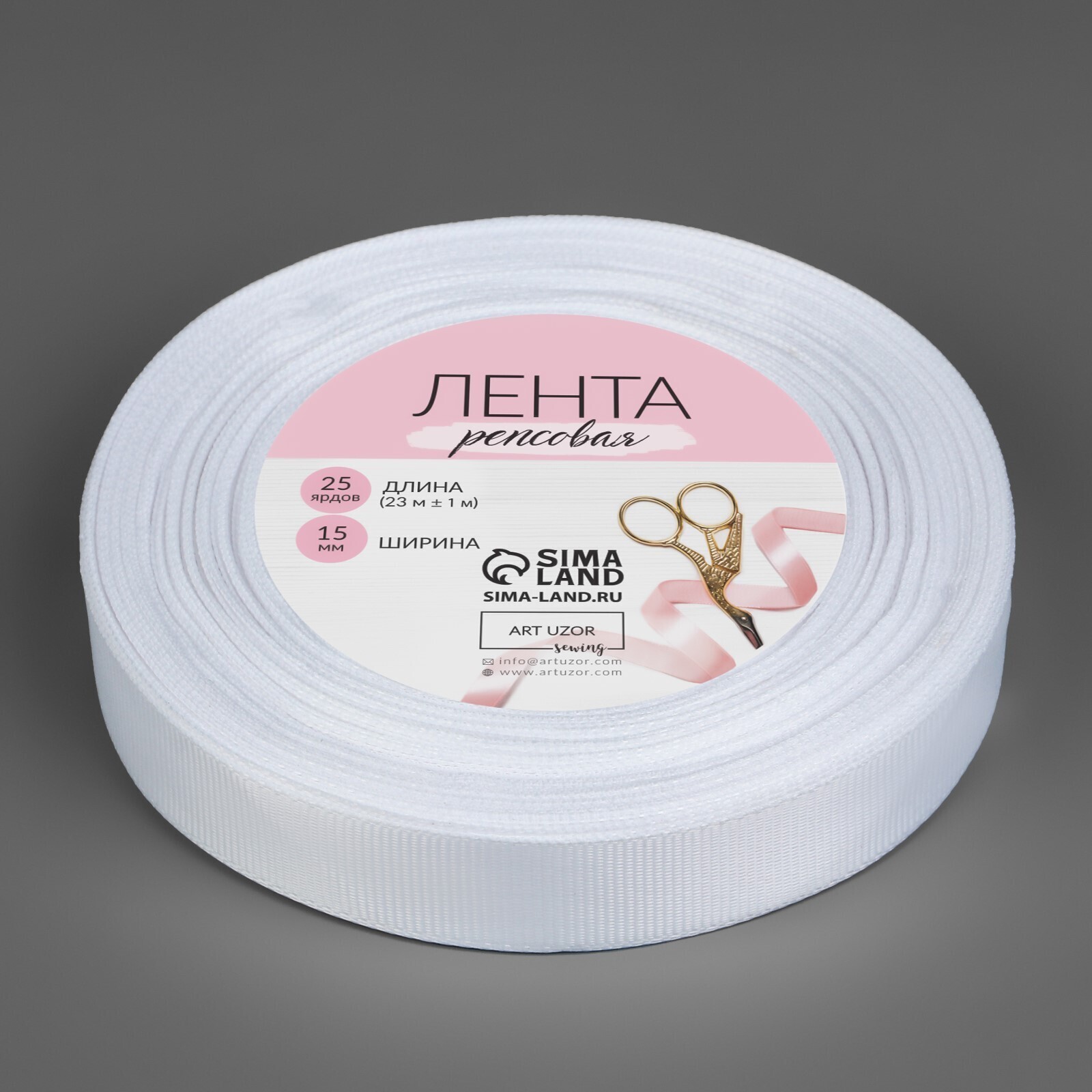 Лента репсовая, 15 мм, 23 ± 1 м, цвет белый №01