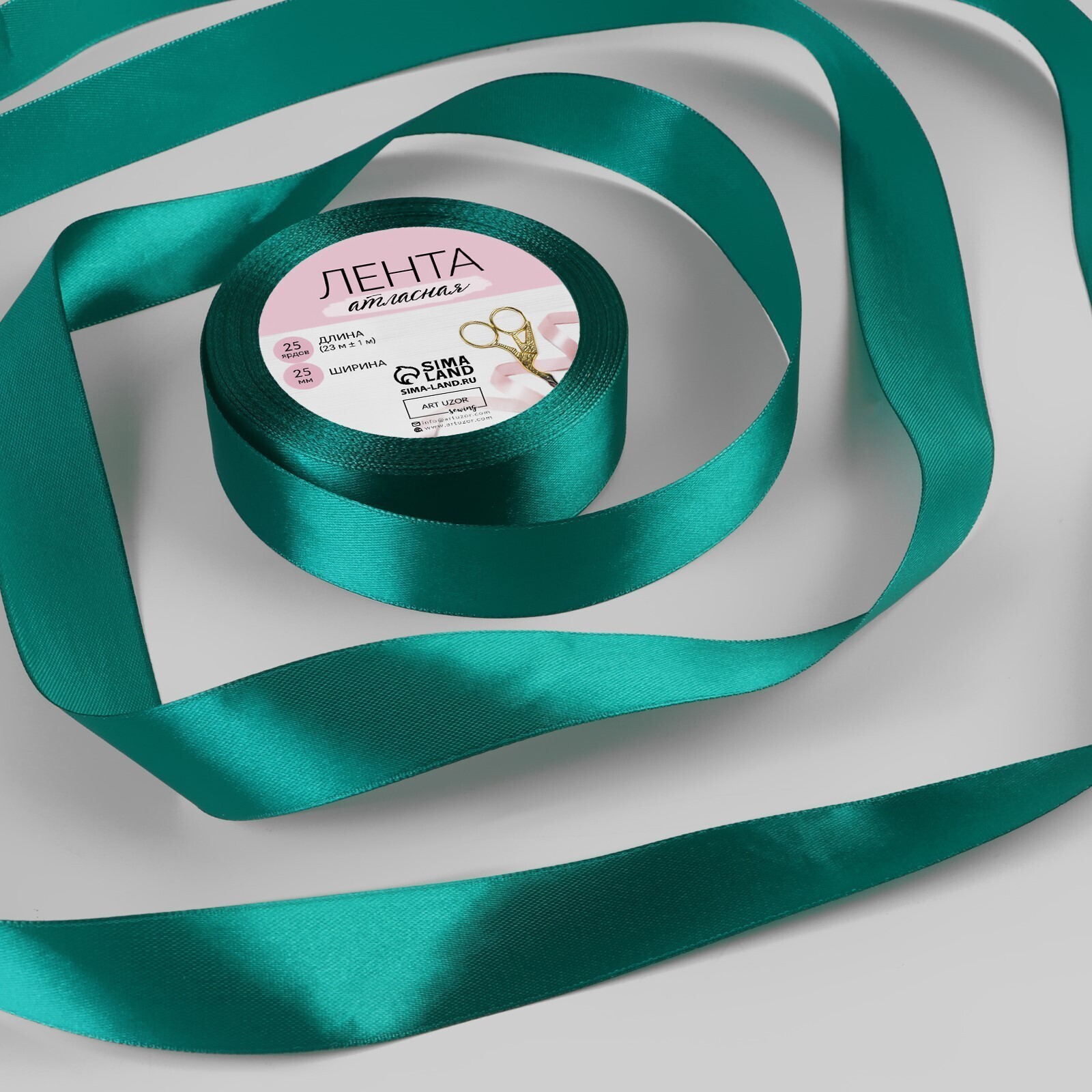 Лента атласная, 25 мм × 23 ± 1 м, цвет изумрудный №140