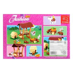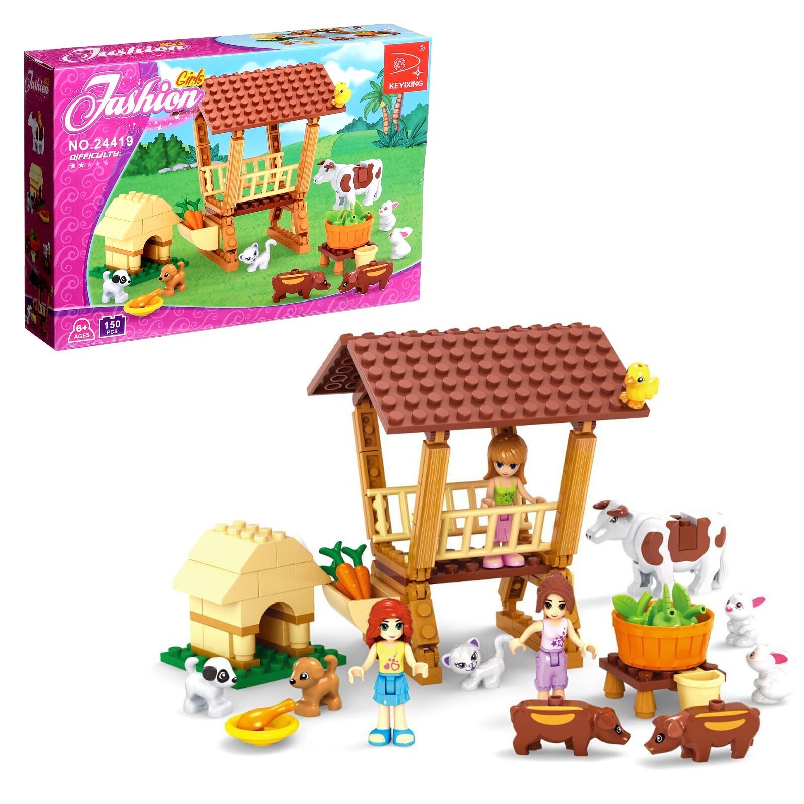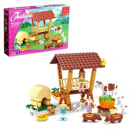 С набором торговой марки Ausini малышка с подружками поселиться на ферме, где будет заботиться о собачках, котятах, корове, кроликах и поросятах. Для щенков девочка построит будку, сделает кормушки животным, вырастит овощи и накормит обитателей ранчо их любимыми лакомствами.