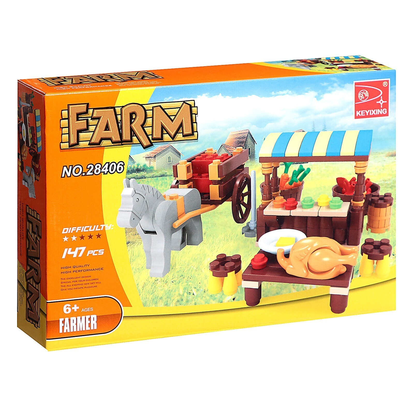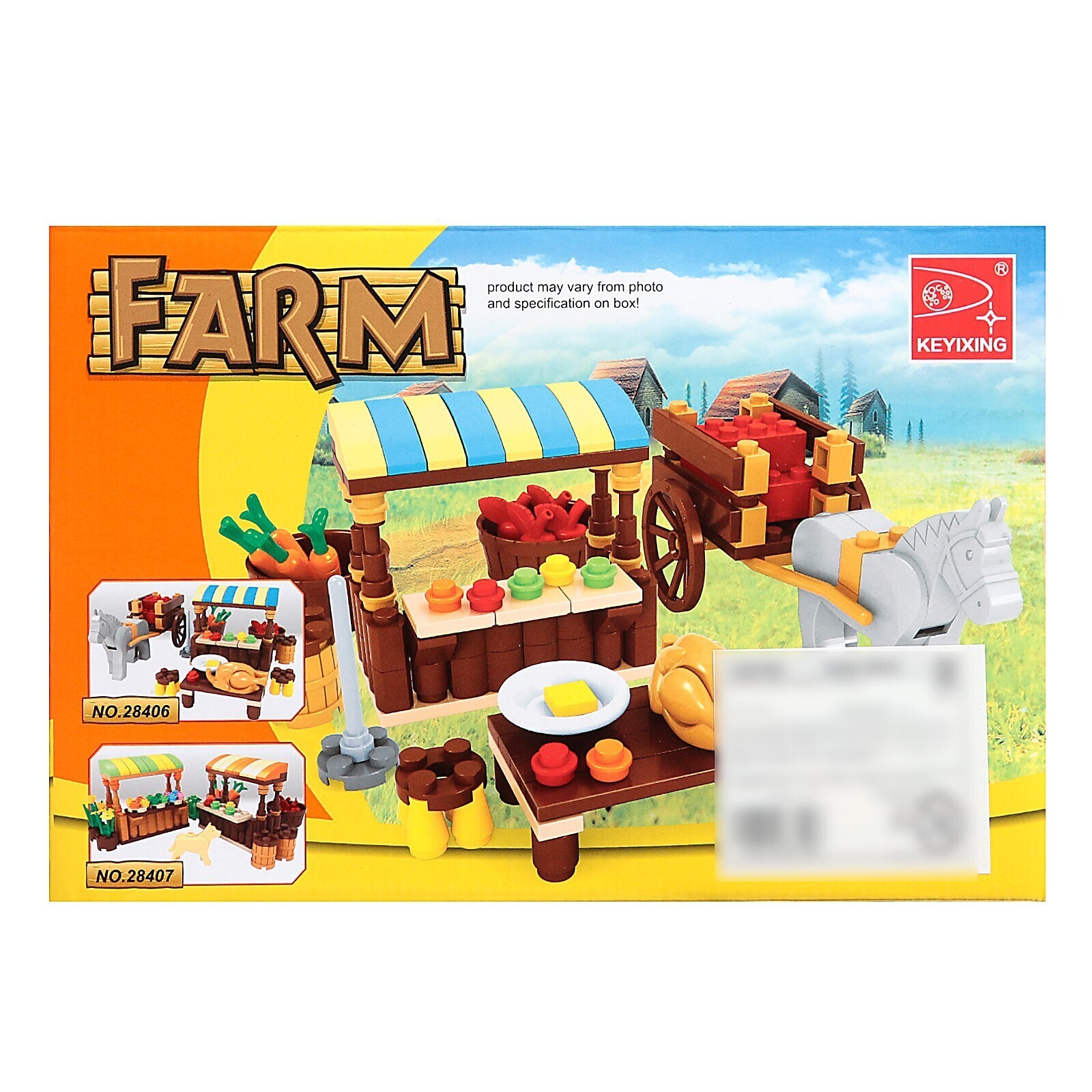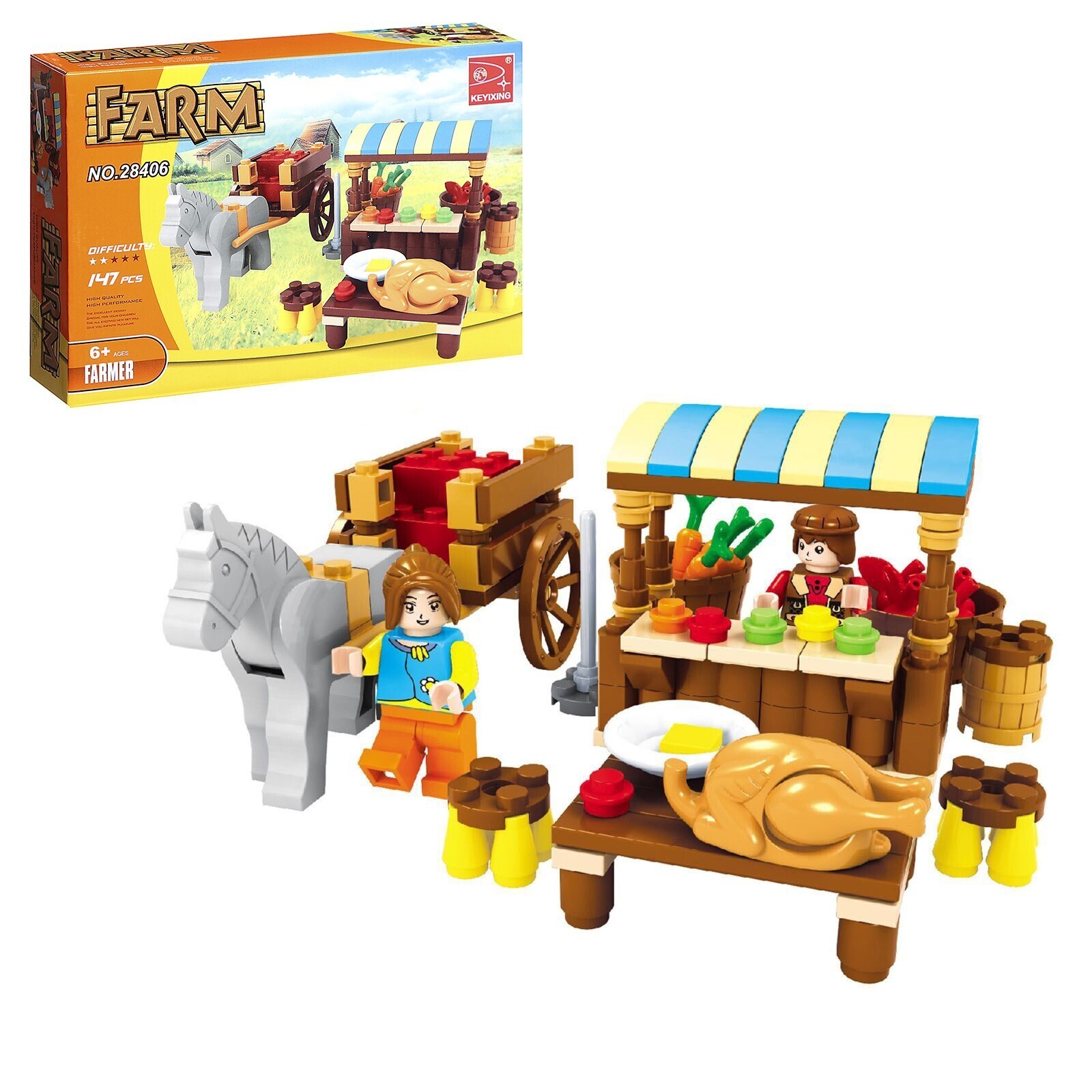 С набором торговой марки Ausini малыш перенесётся на фермерский рынок, где поможет земледельцам продать поспевший урожай. Из 147 деталей ребёнок сконструирует прилавок, разложит на нём мясо и овощи, а после торговли увезёт продукты на телеге.