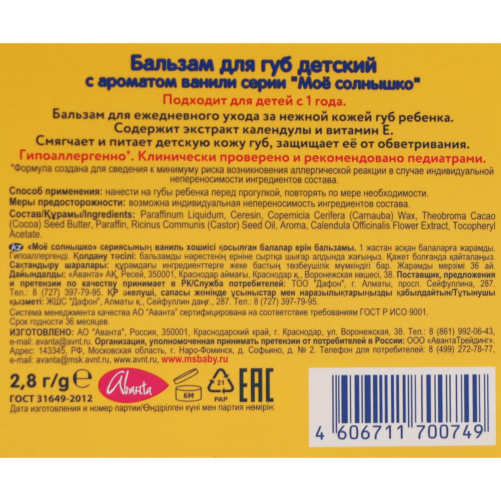 Бальзам для губ МОЕ СОЛНЫШКО ваниль в футляре 2.8гр