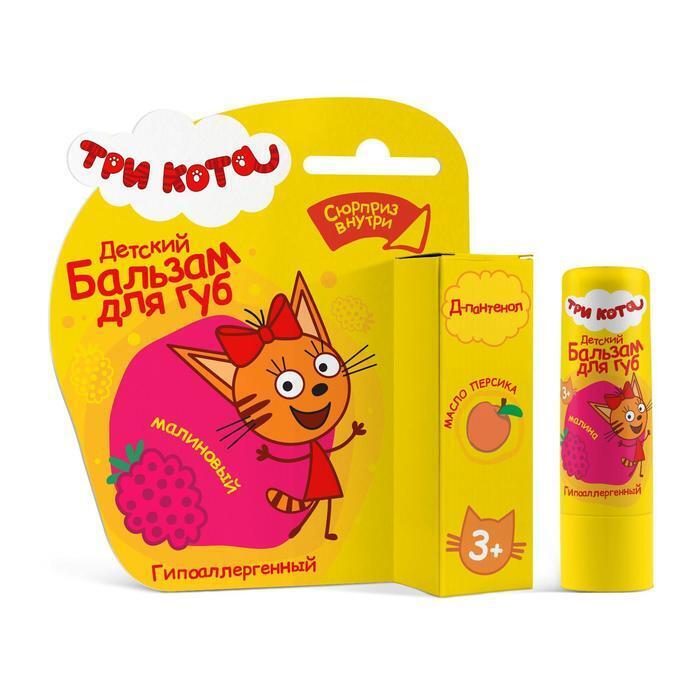 Бальзам для губ Три кота, гипоаллергенный, малиновый