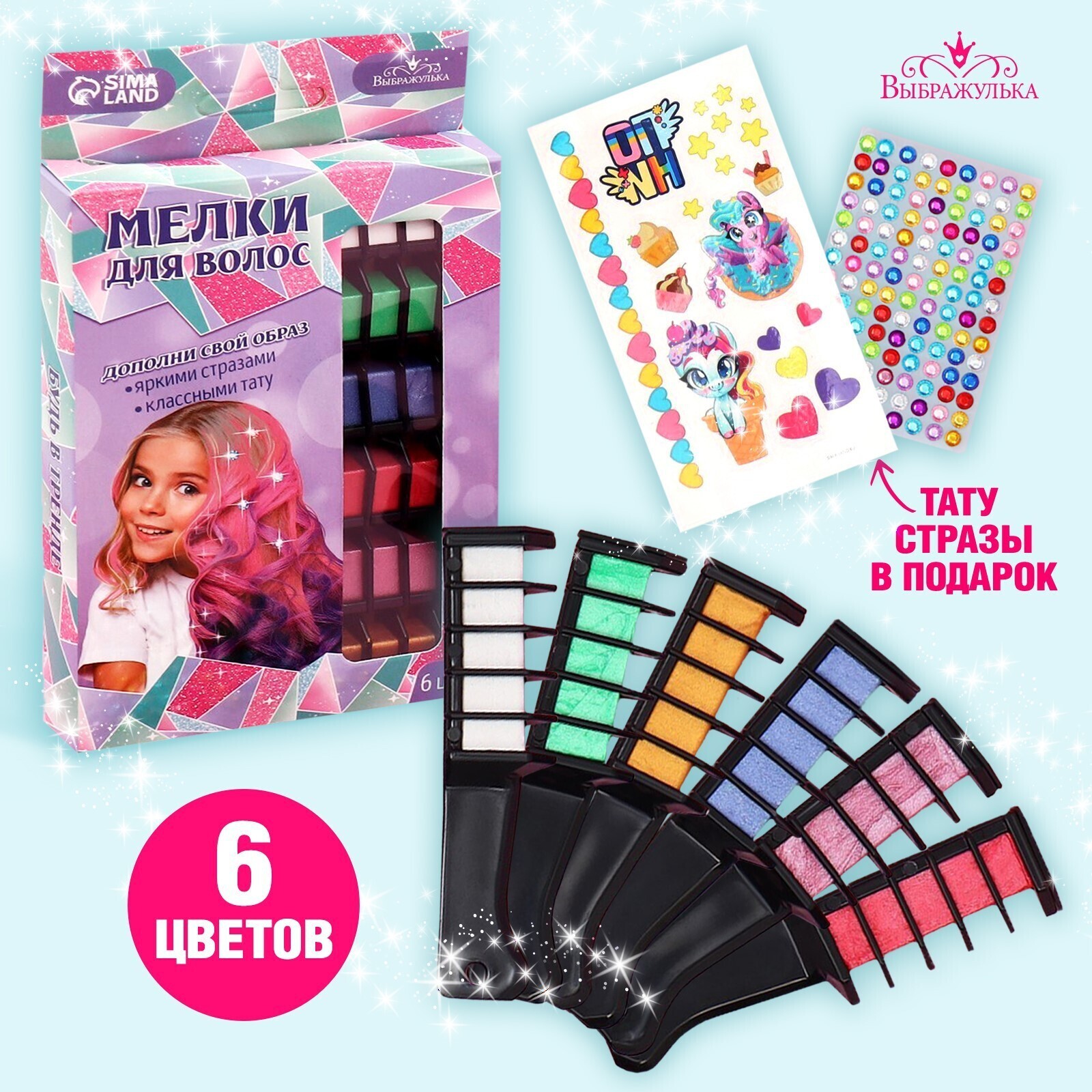 Мелки для волос «Будь в тренде», 6 цветов
