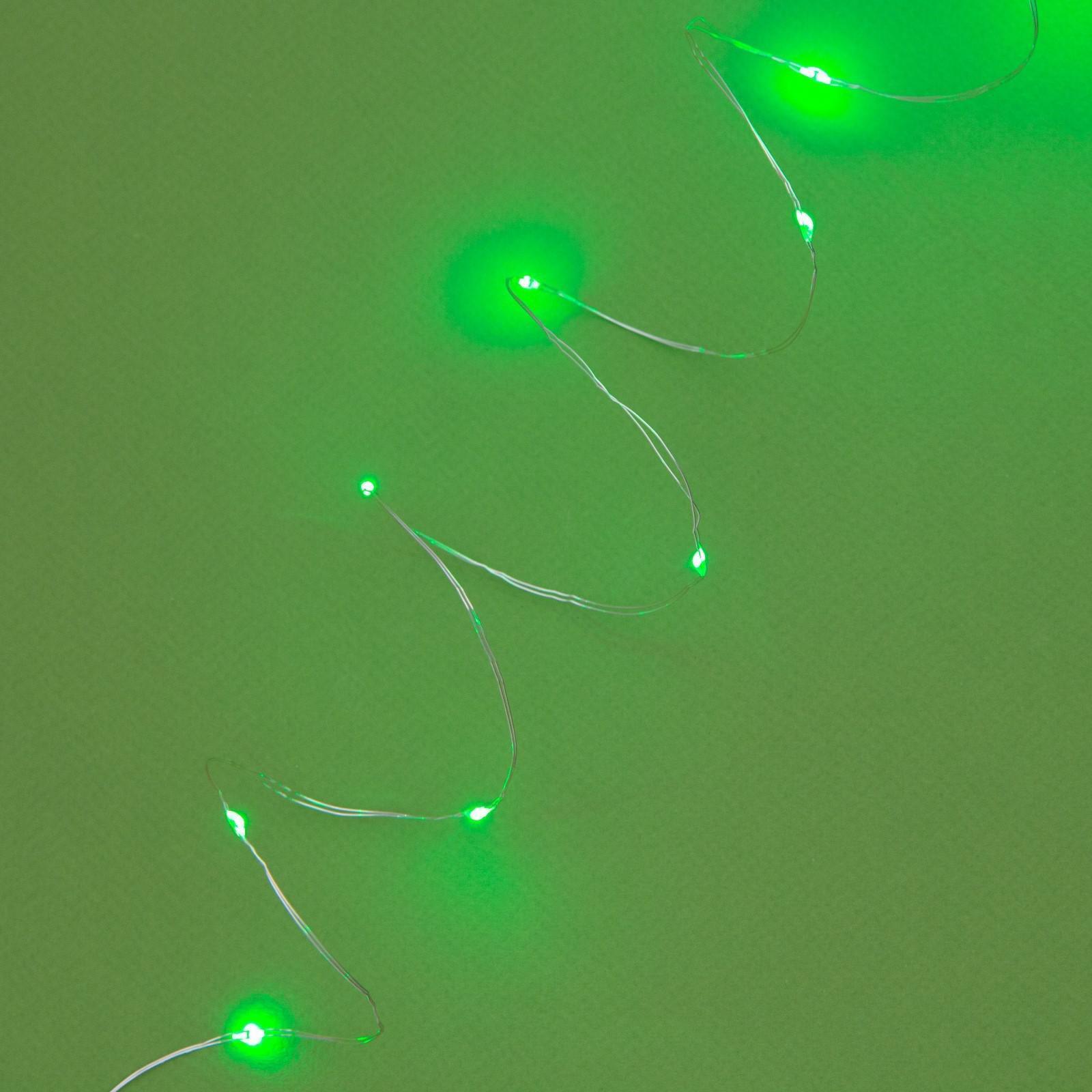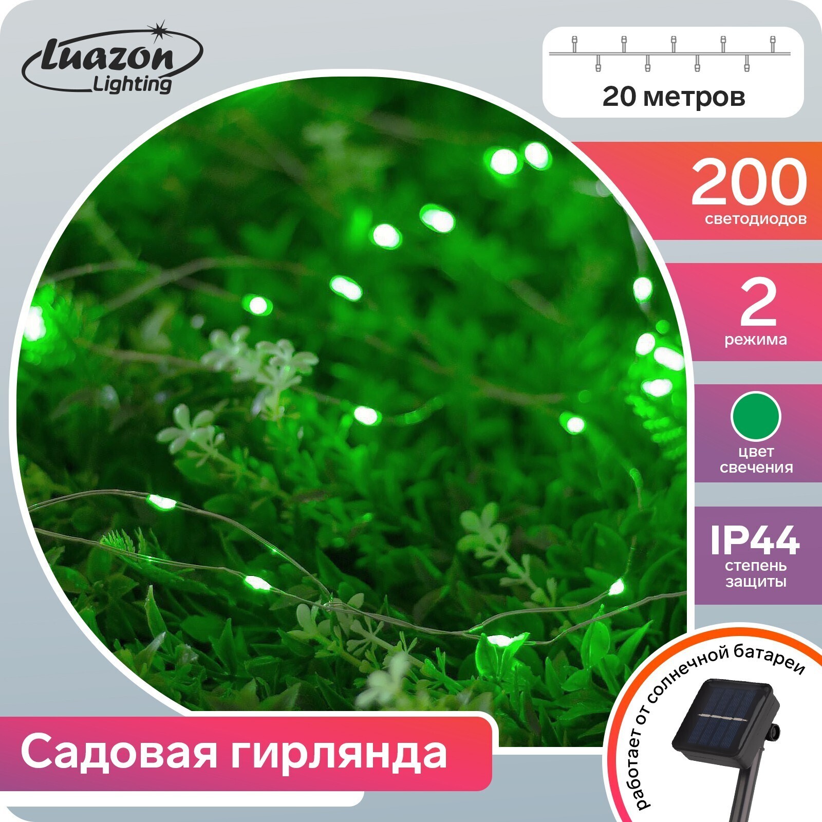 Гирлянда «Нить» 20 м роса, IP44, серебристая нить, 200 LED, свечение зелёное, 2 режима, солнечная батарея