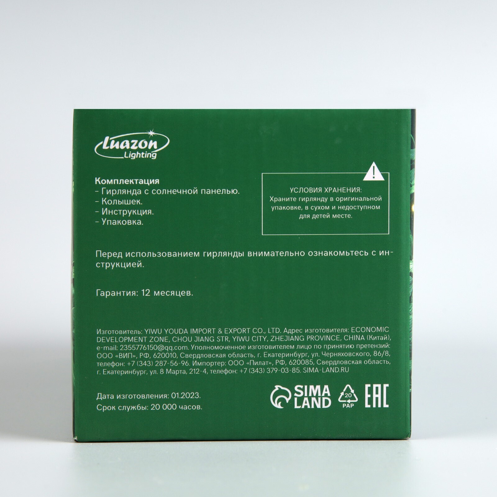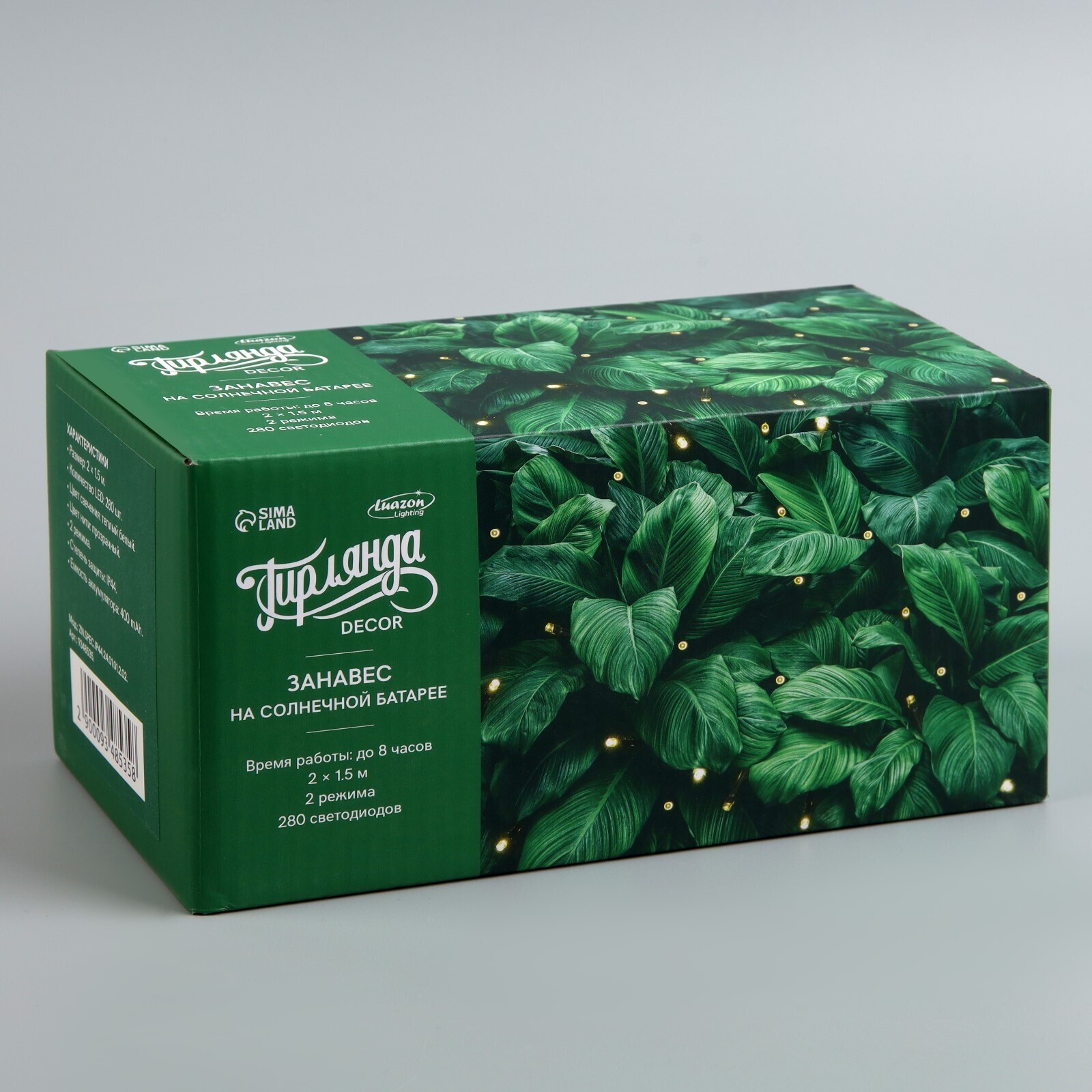 Гирлянда «Занавес» 2 х 1.5 м, IP44, тёмная нить, 280 LED, свечение тёплое белое, 8 режимов, солнечная батарея
