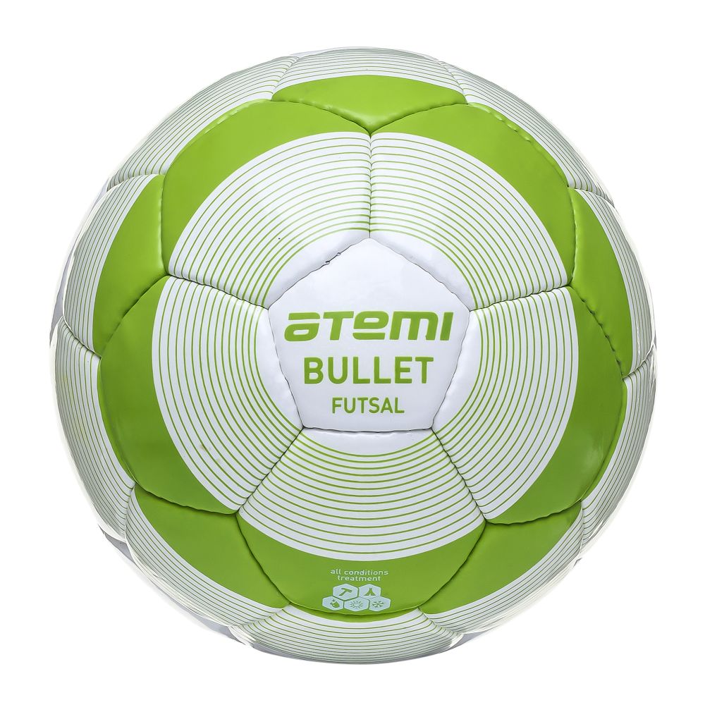 Мяч футзальный Atemi BULLET FUTSAL, PU, бел/зел, р.4, окруж 62-63