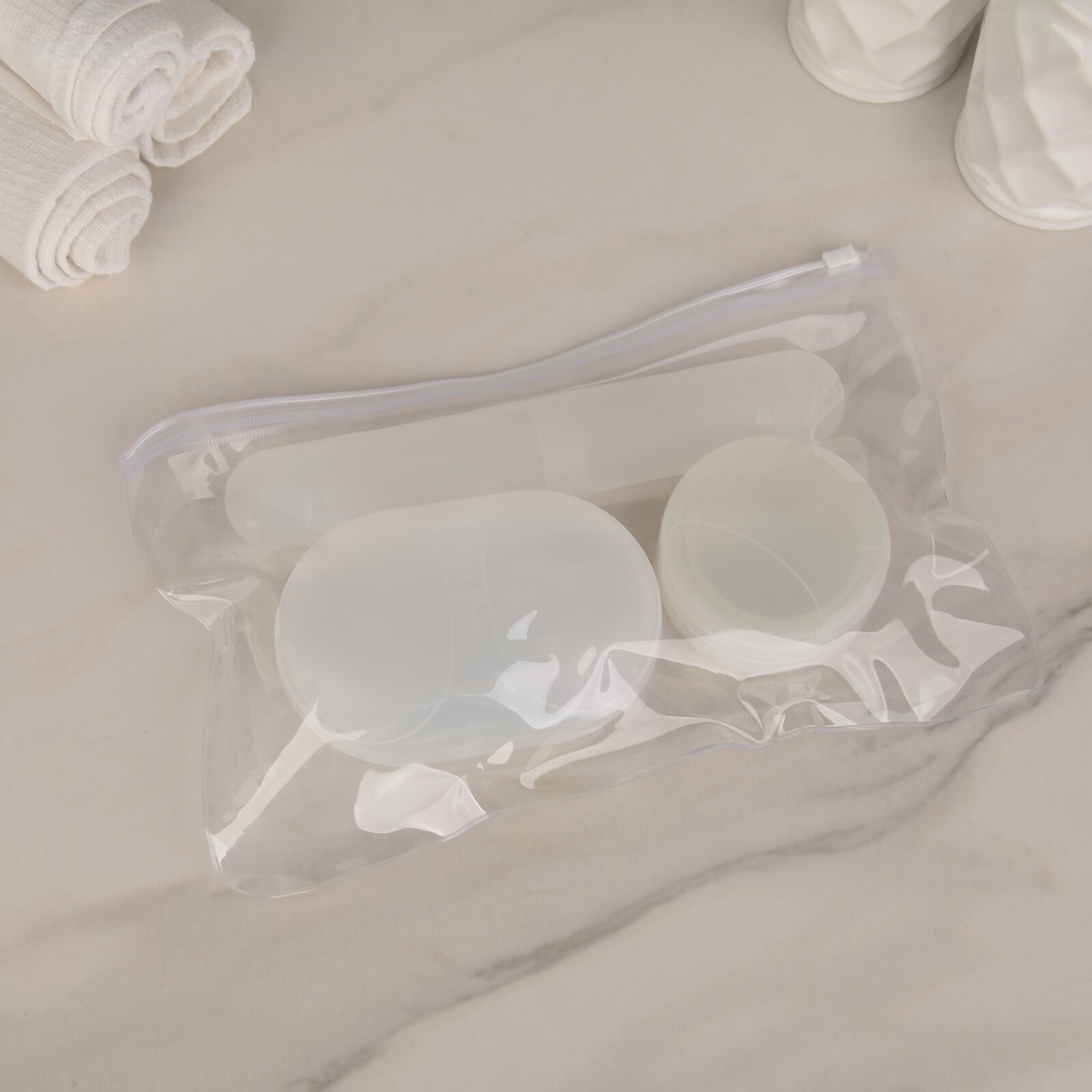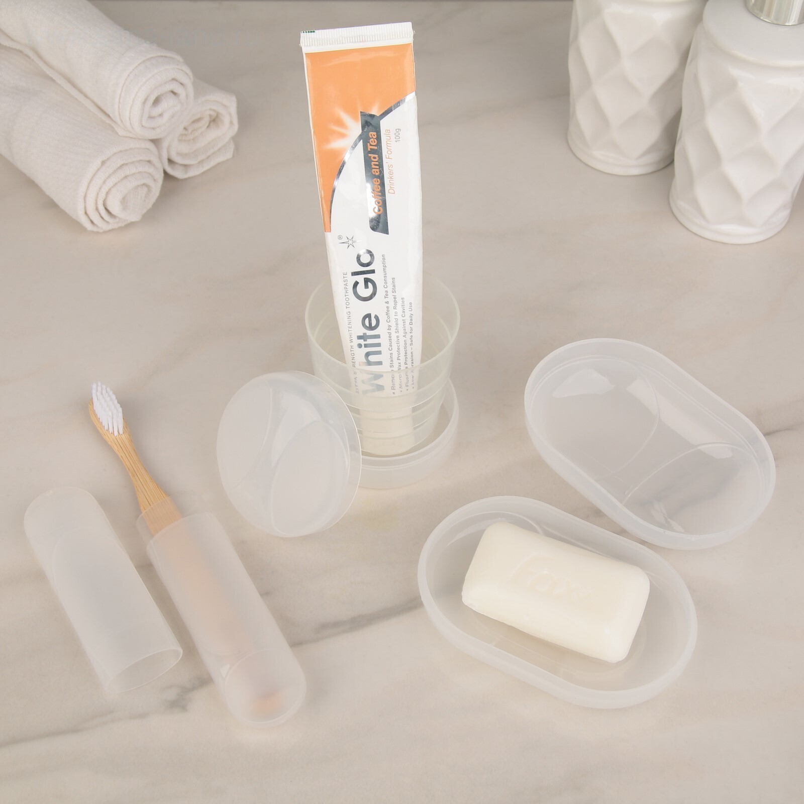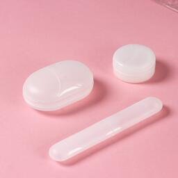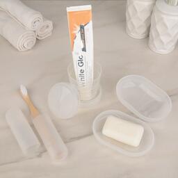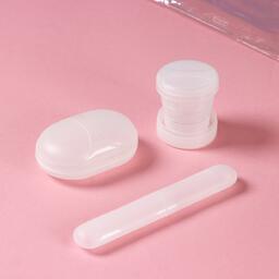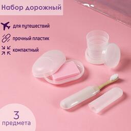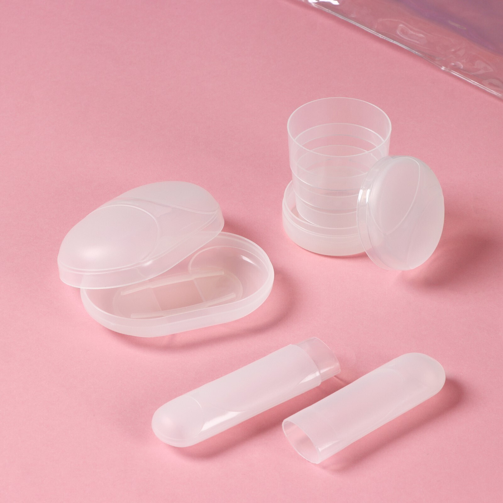 Набор дорожный, 3 предмета в косметичке: футляр для зубной щётки, мыльница, стакан складной, цвет прозрачный