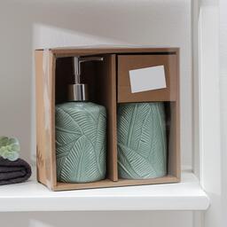 Набор аксессуаров для ванной комнаты «Листва», 2 предмета (дозатор для мыла, стакан), цвет зелёный