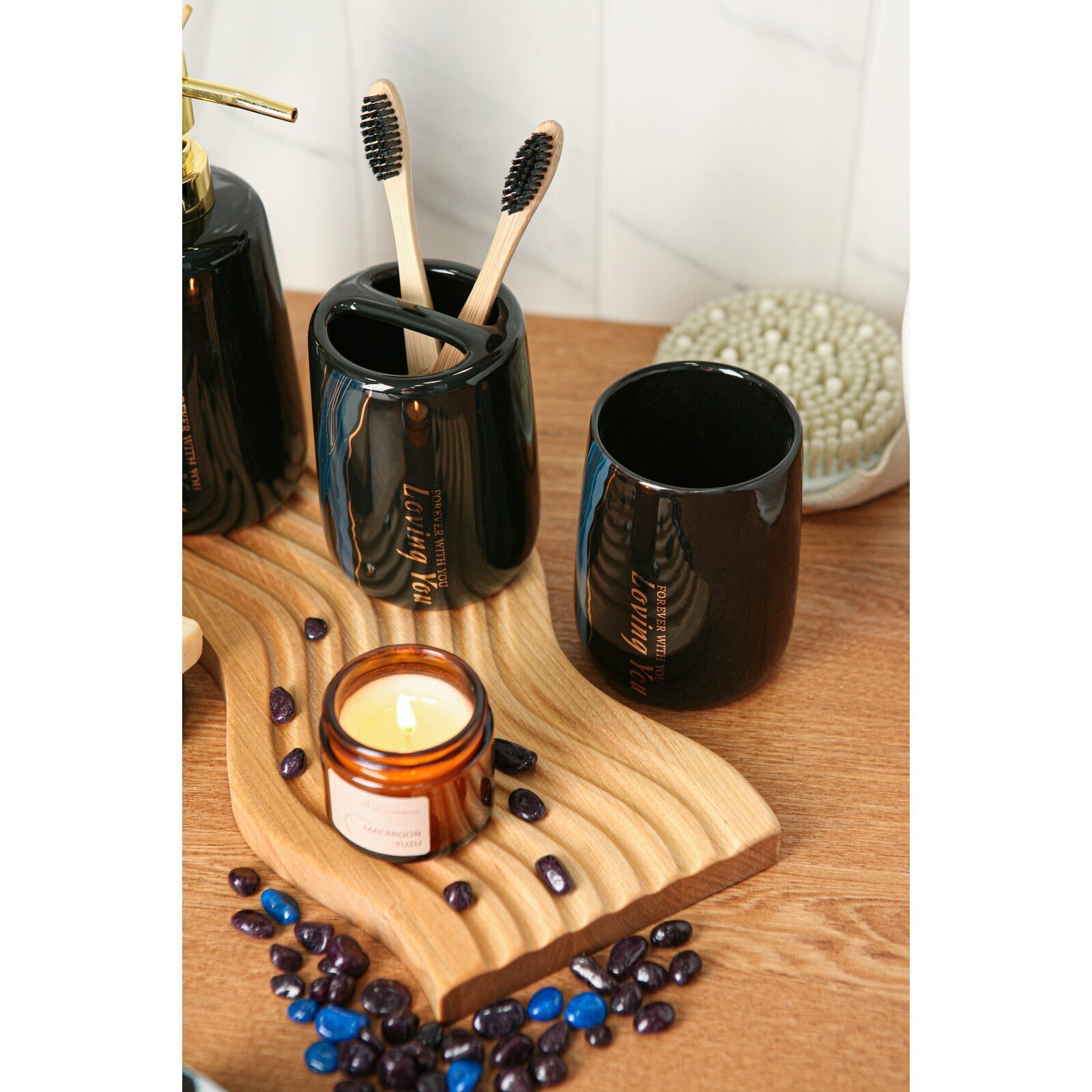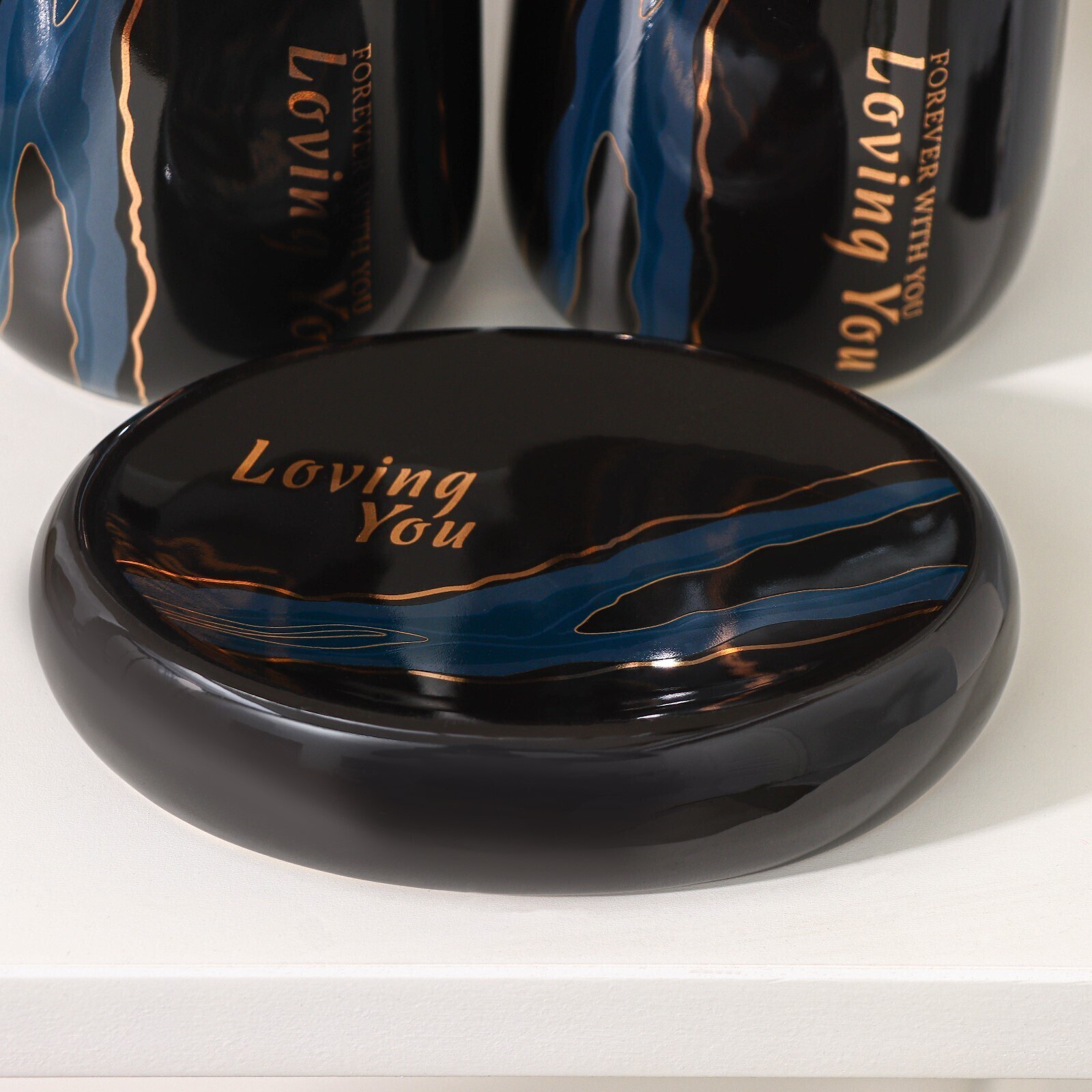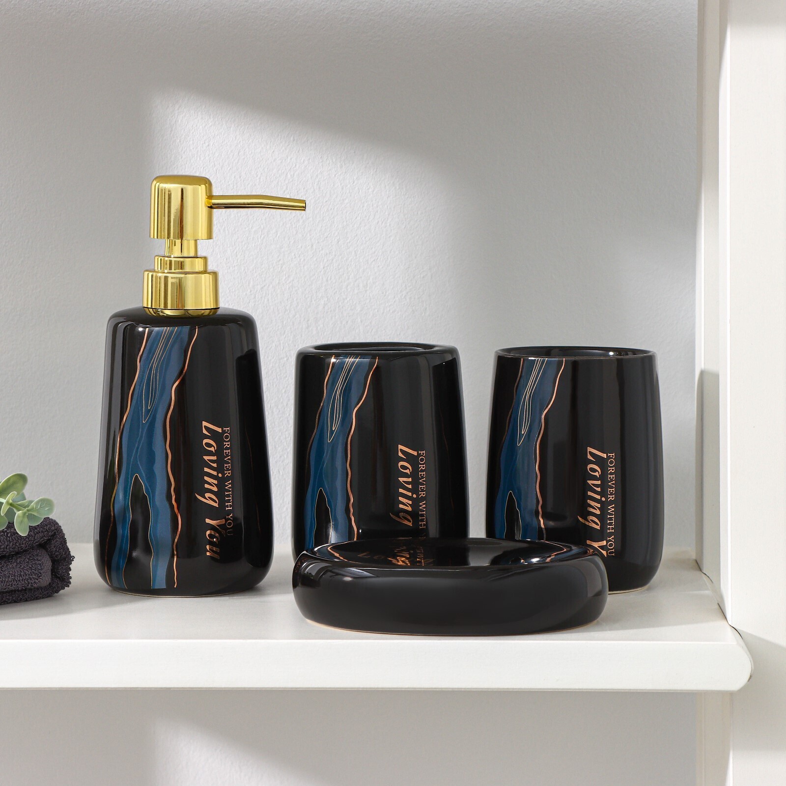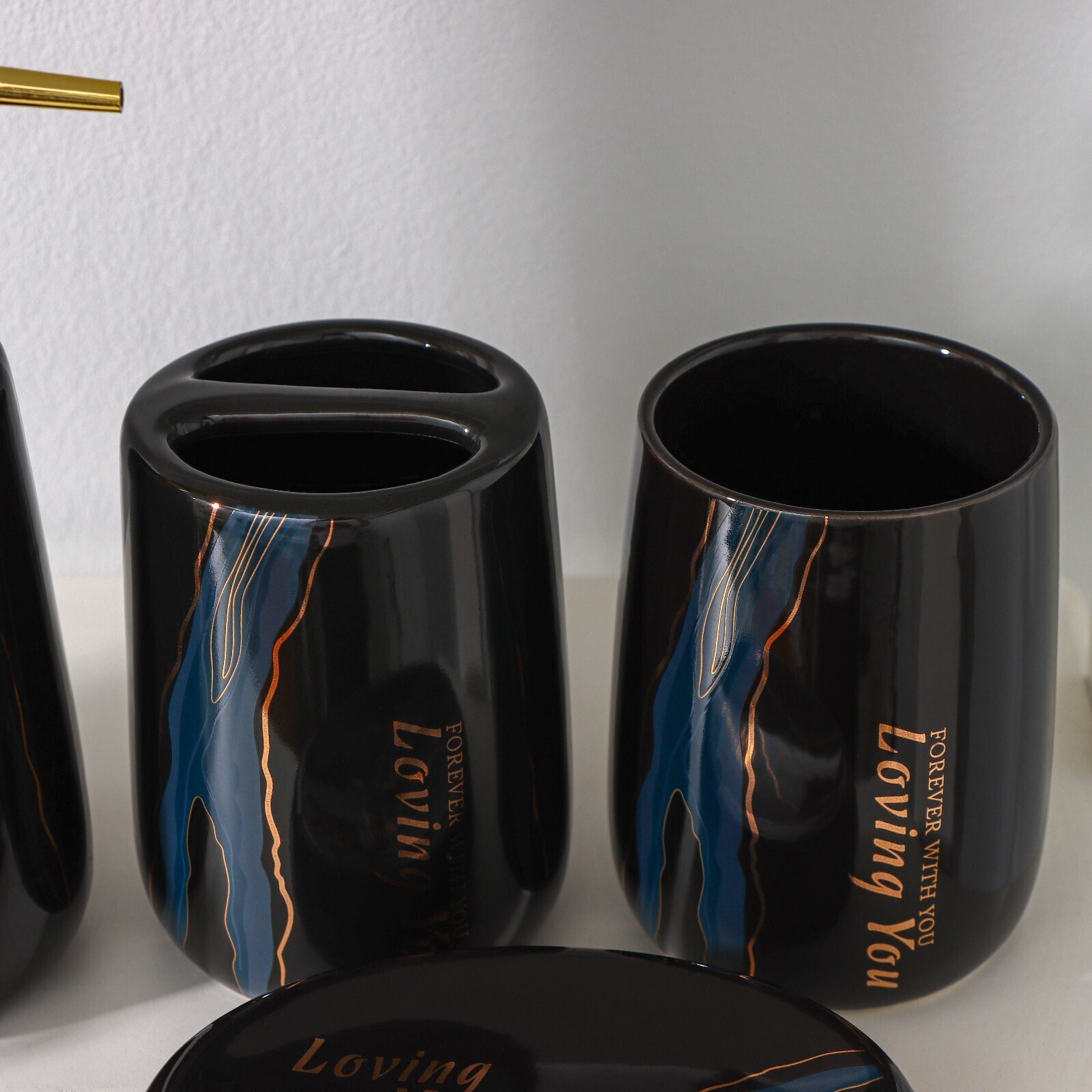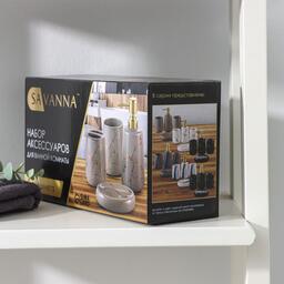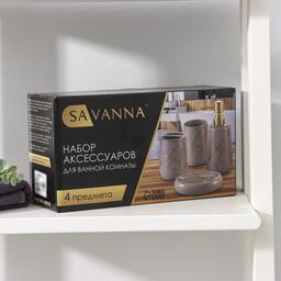 Набор аксессуаров для ванной комнаты SAVANNA «Малахит», 4 предмета (мыльница, дозатор для мыла, 2 стакана), цвет чёрный