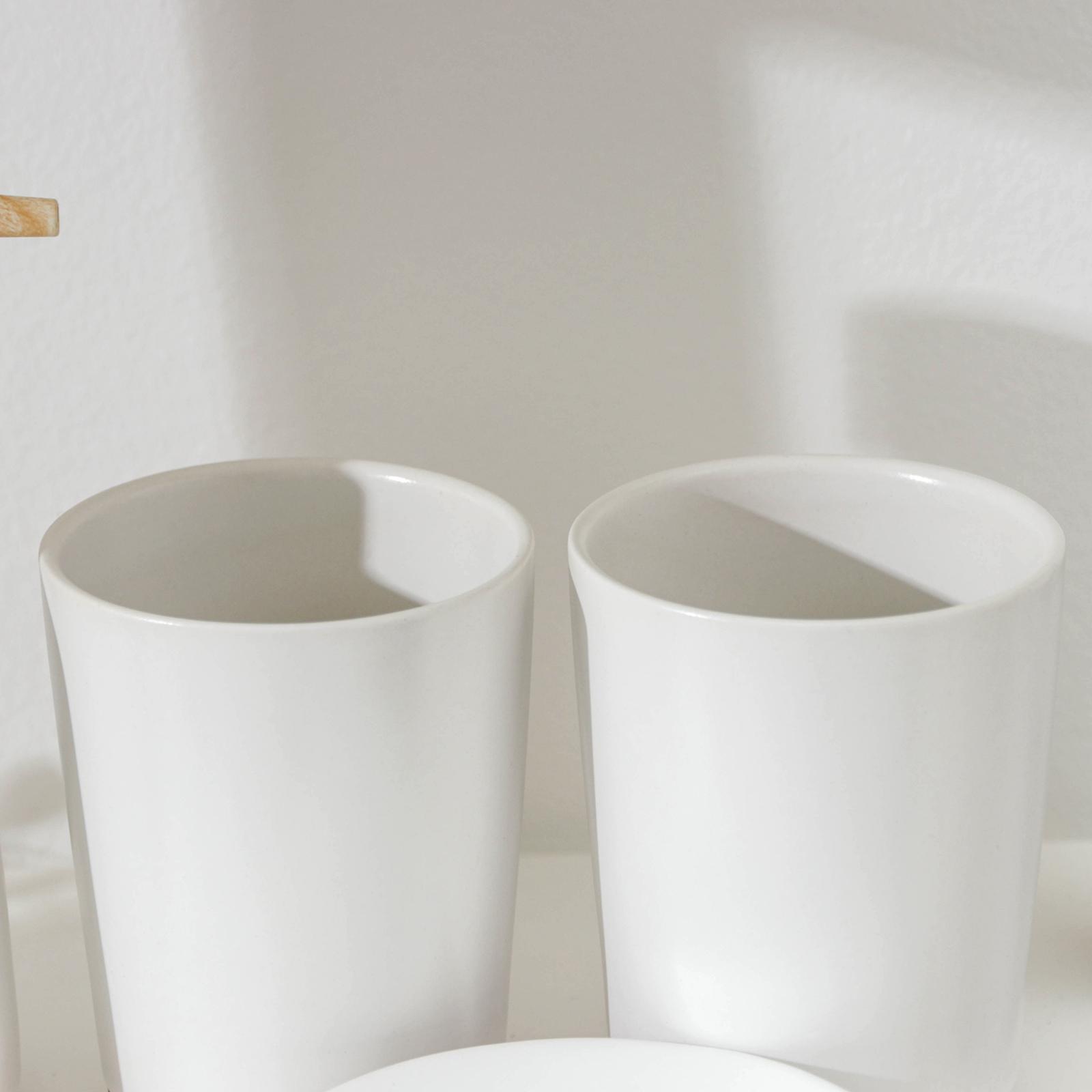 Набор аксессуаров организует пространство и станет стильным украшением Вашей ванной комнаты. За счет сдержанного дизайна данный керамический набор в ванную подойдет к любому дизайну ванной комнаты. Набор состоит из 4 предметов: 2 стакана, мыльница, дозатор.