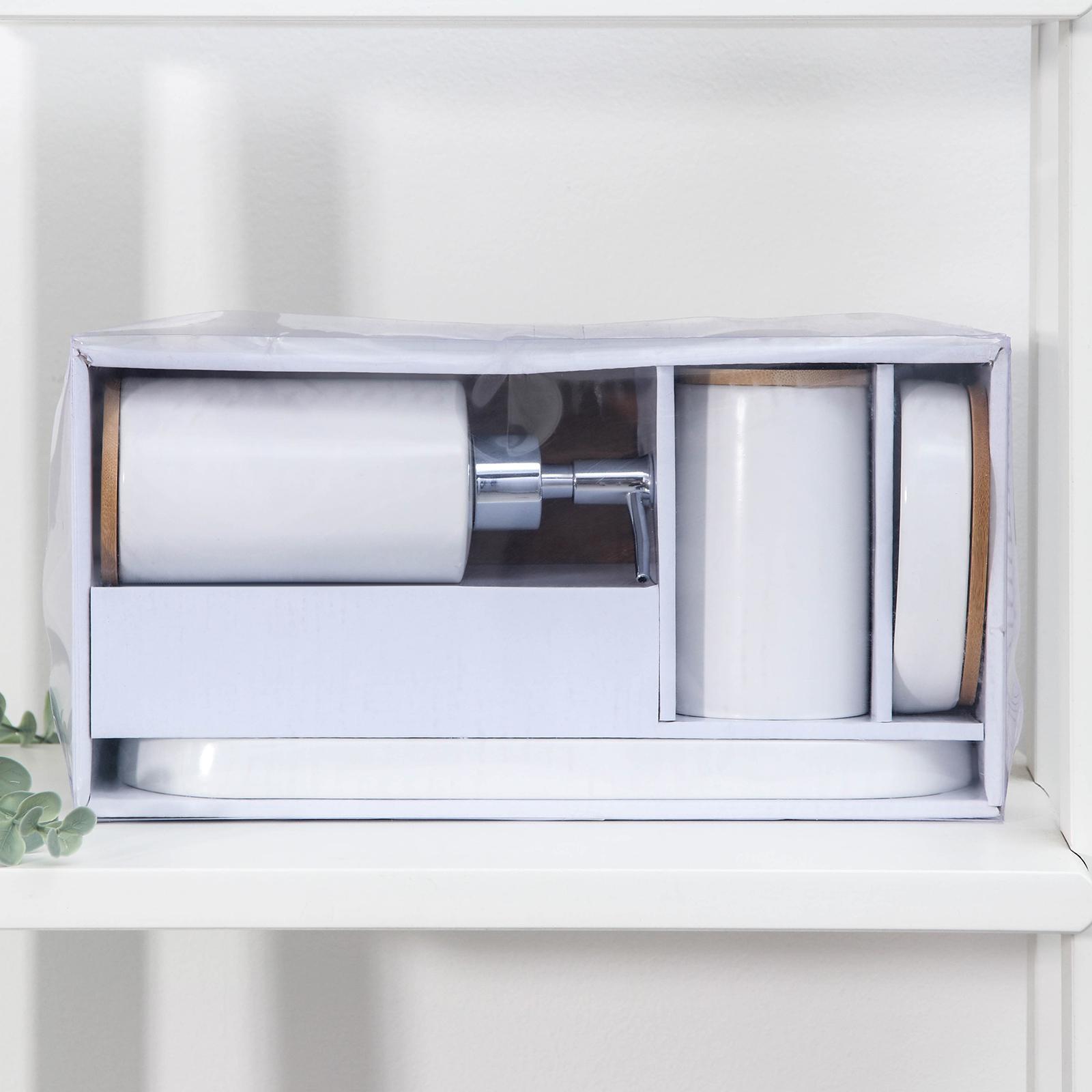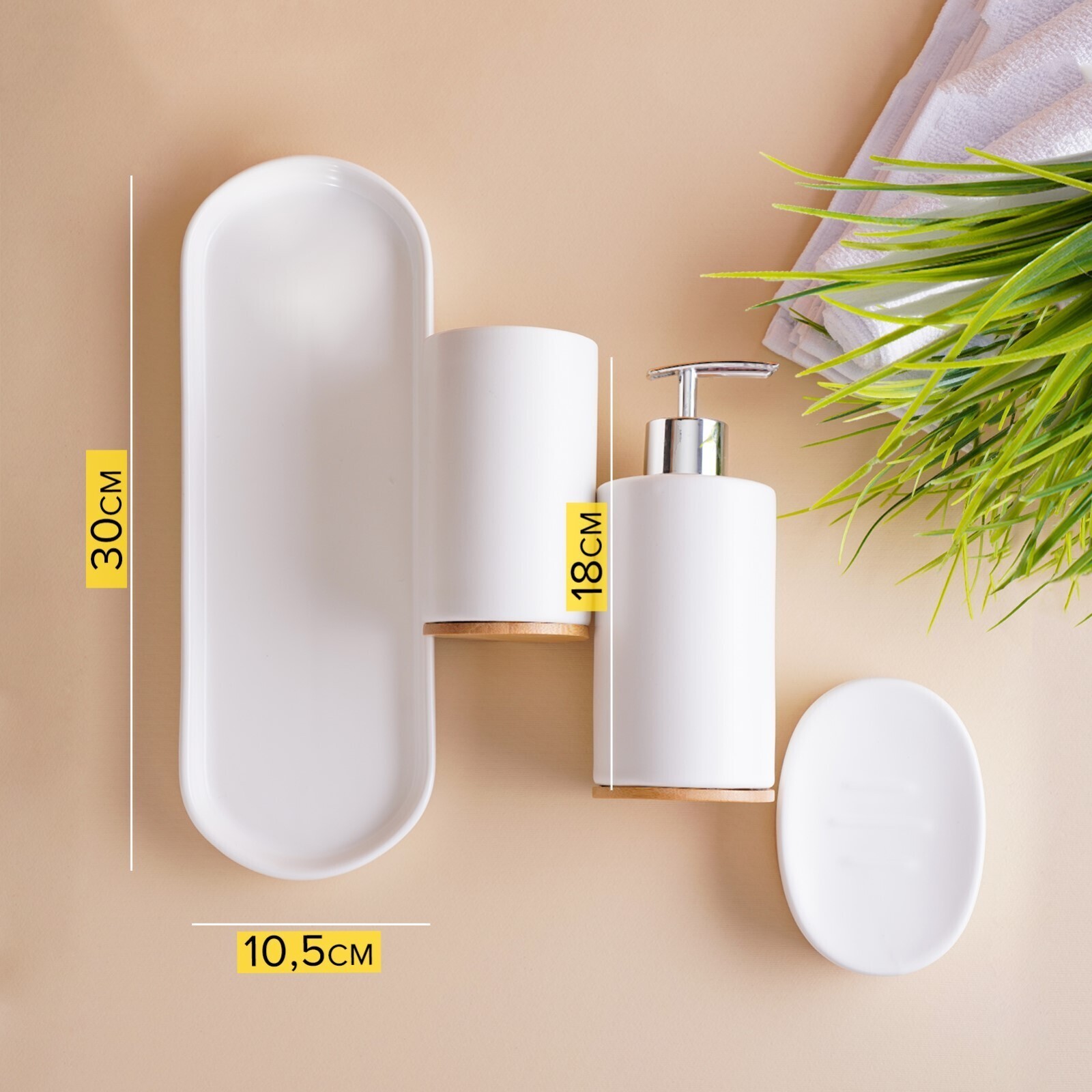 Набор аксессуаров для ванной комнаты Доляна «Гармония», 4 предмета (дозатор 380 мл, мыльница, стакан, подставка)