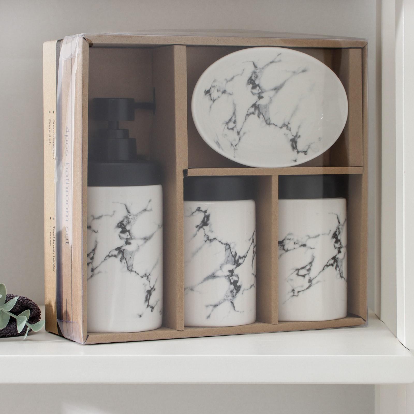 Набор аксессуаров для ванной комнаты «Мраморный металл», 4 предмета (мыльница, дозатор 400 мл, два стакана)